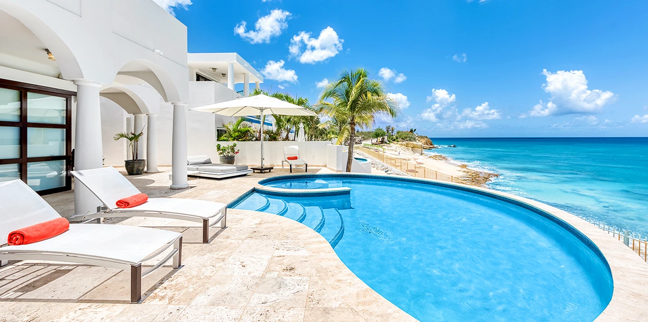 Villa Mumbai (villa code: PIE MUM), is a 3-bedroom villa located in Beachfront/Cupecoy, St. Martin within steps of the beach and minutes from shopping.