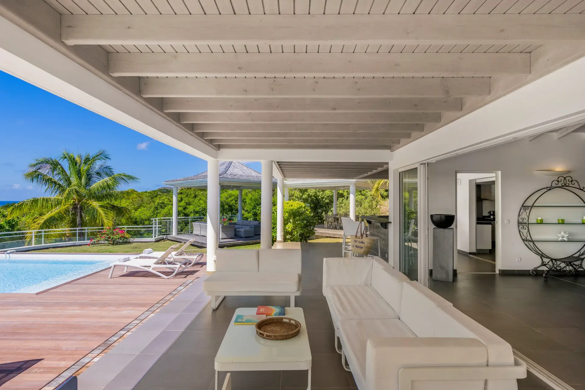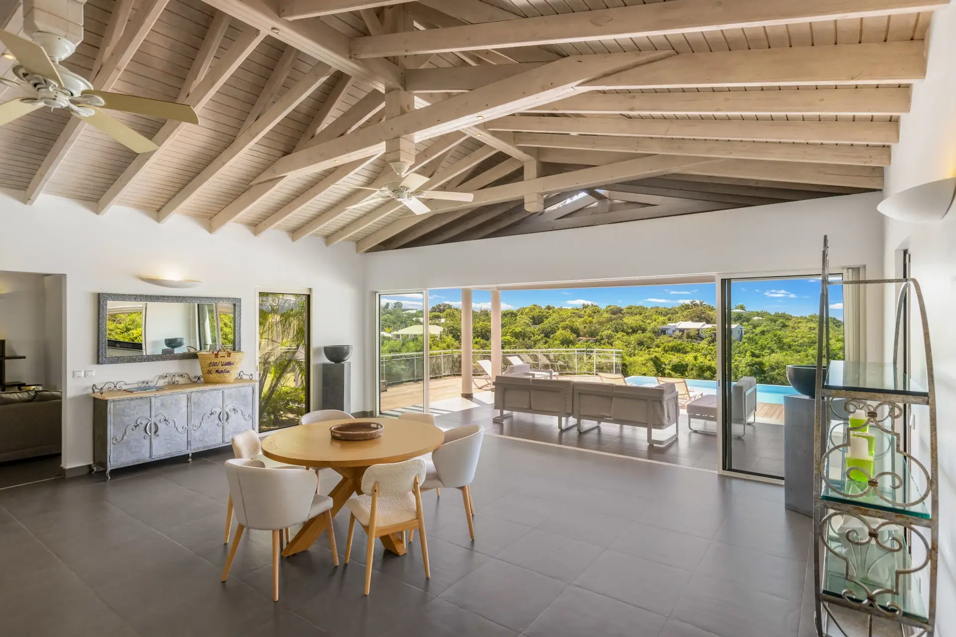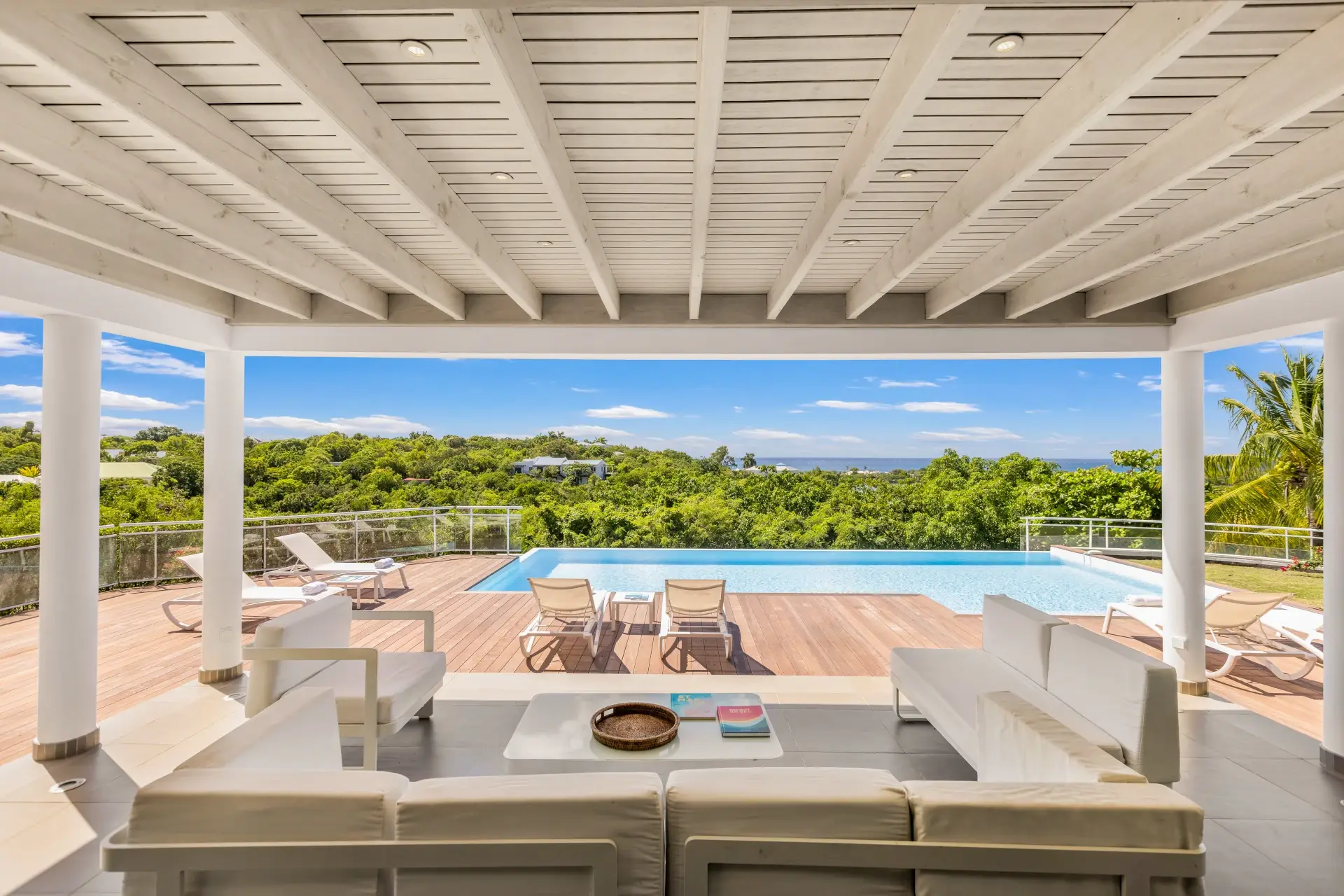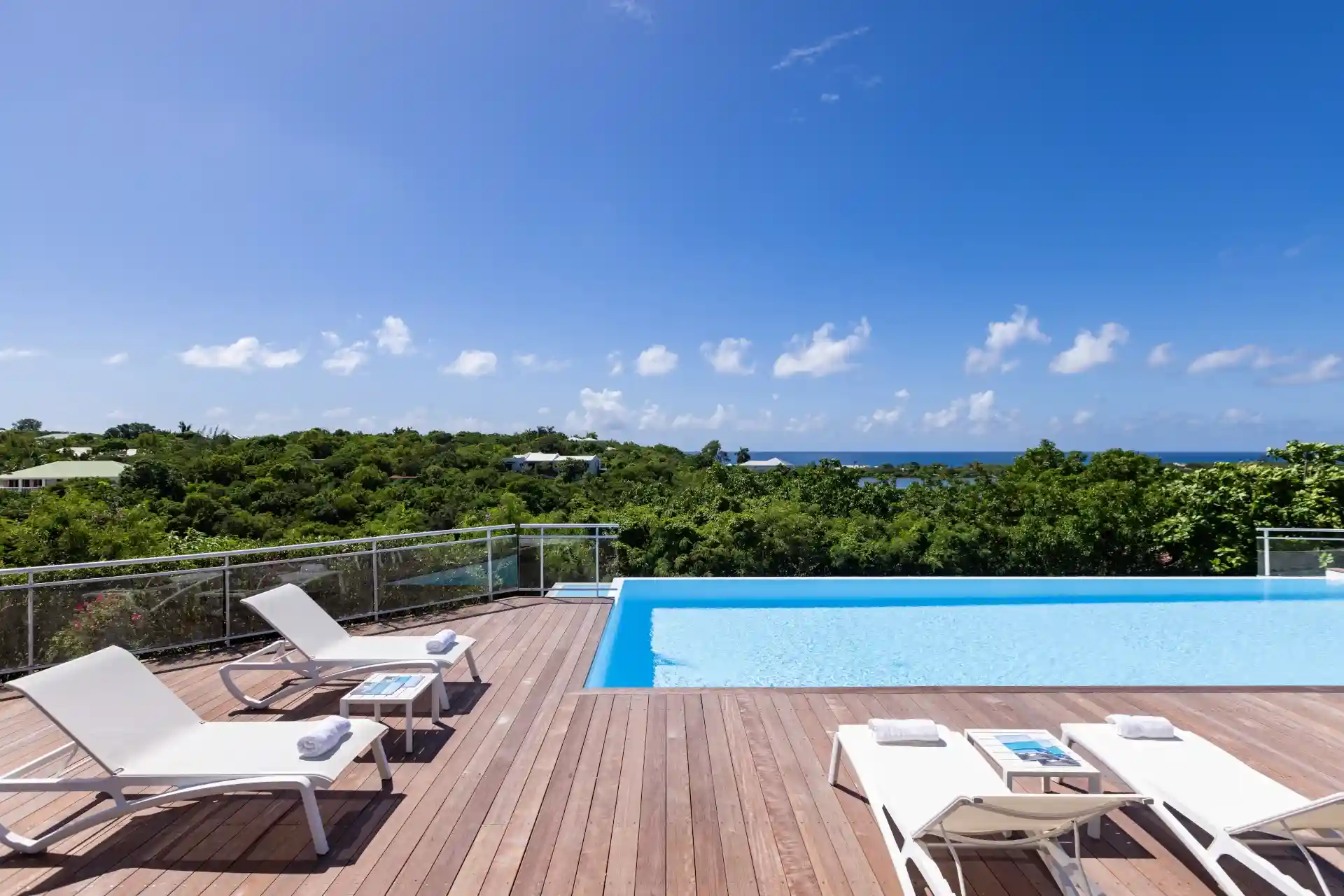 The terrace is stunning and the large infinity pool faces Baie Longue and the Caribbean sea with gorgeous sunset views.