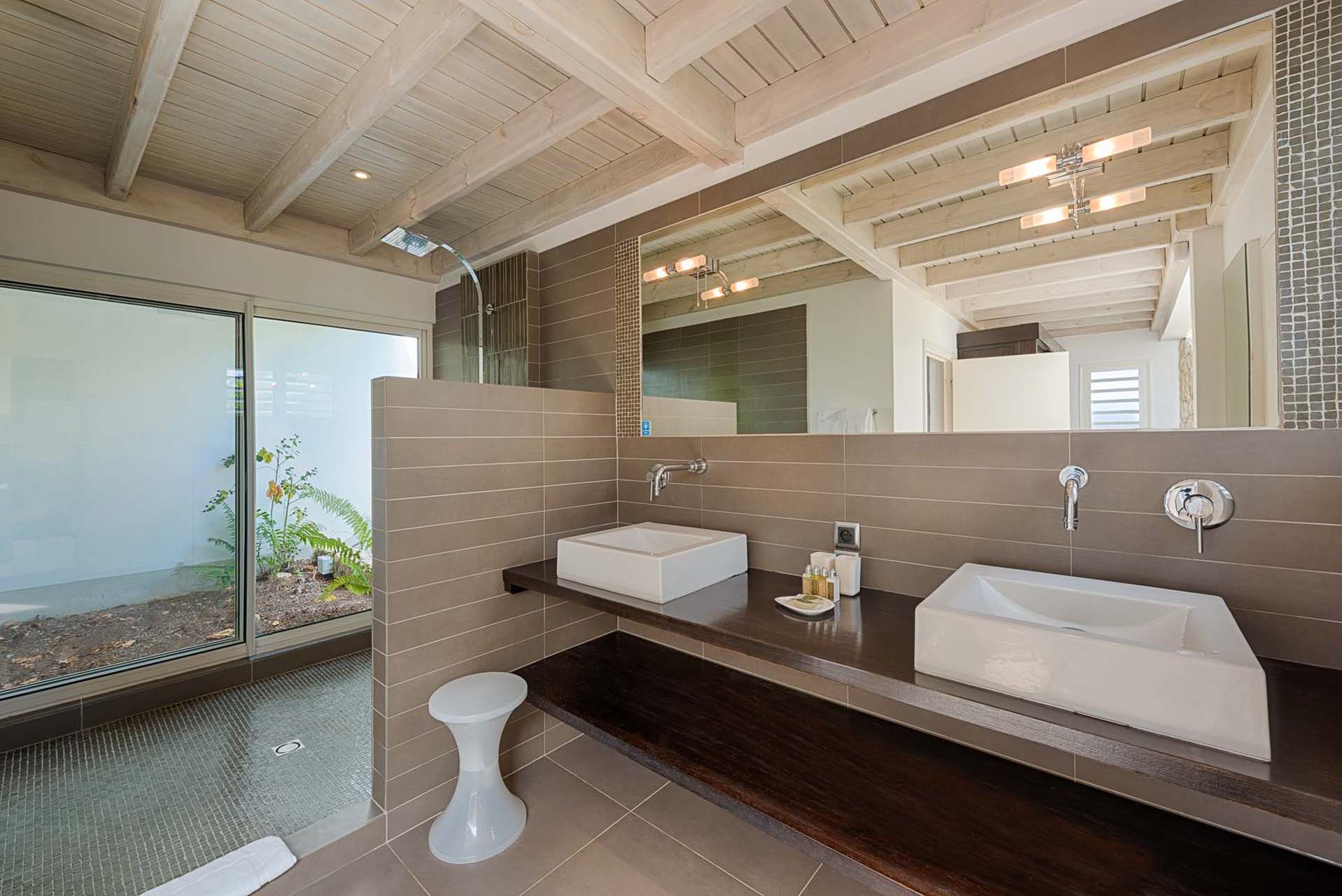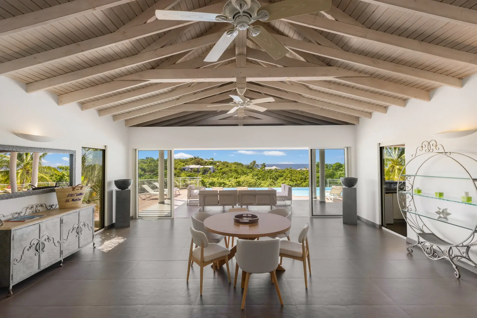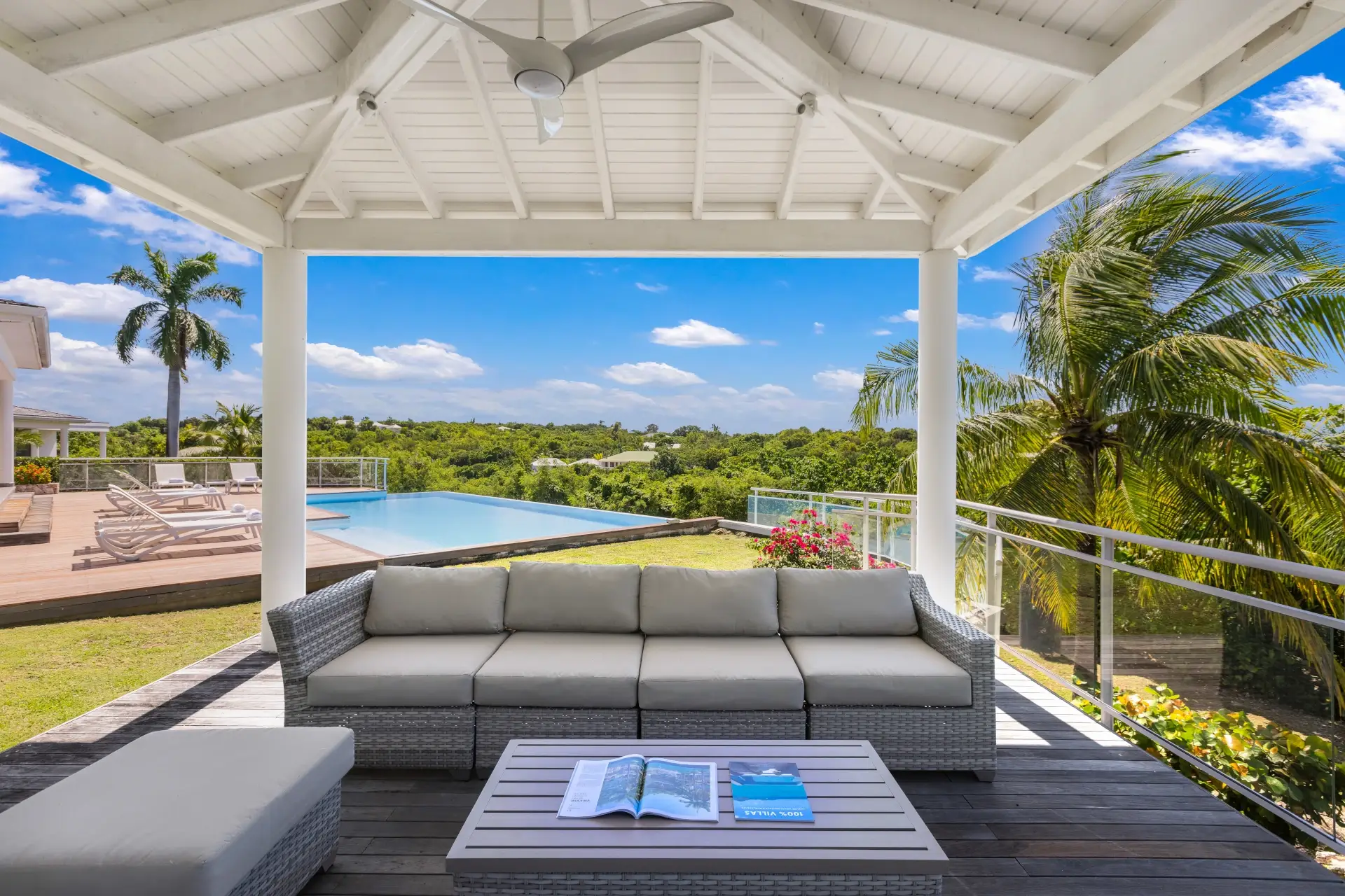 The terrace is stunning and the large infinity pool faces Baie Longue and the Caribbean sea with gorgeous sunset views.