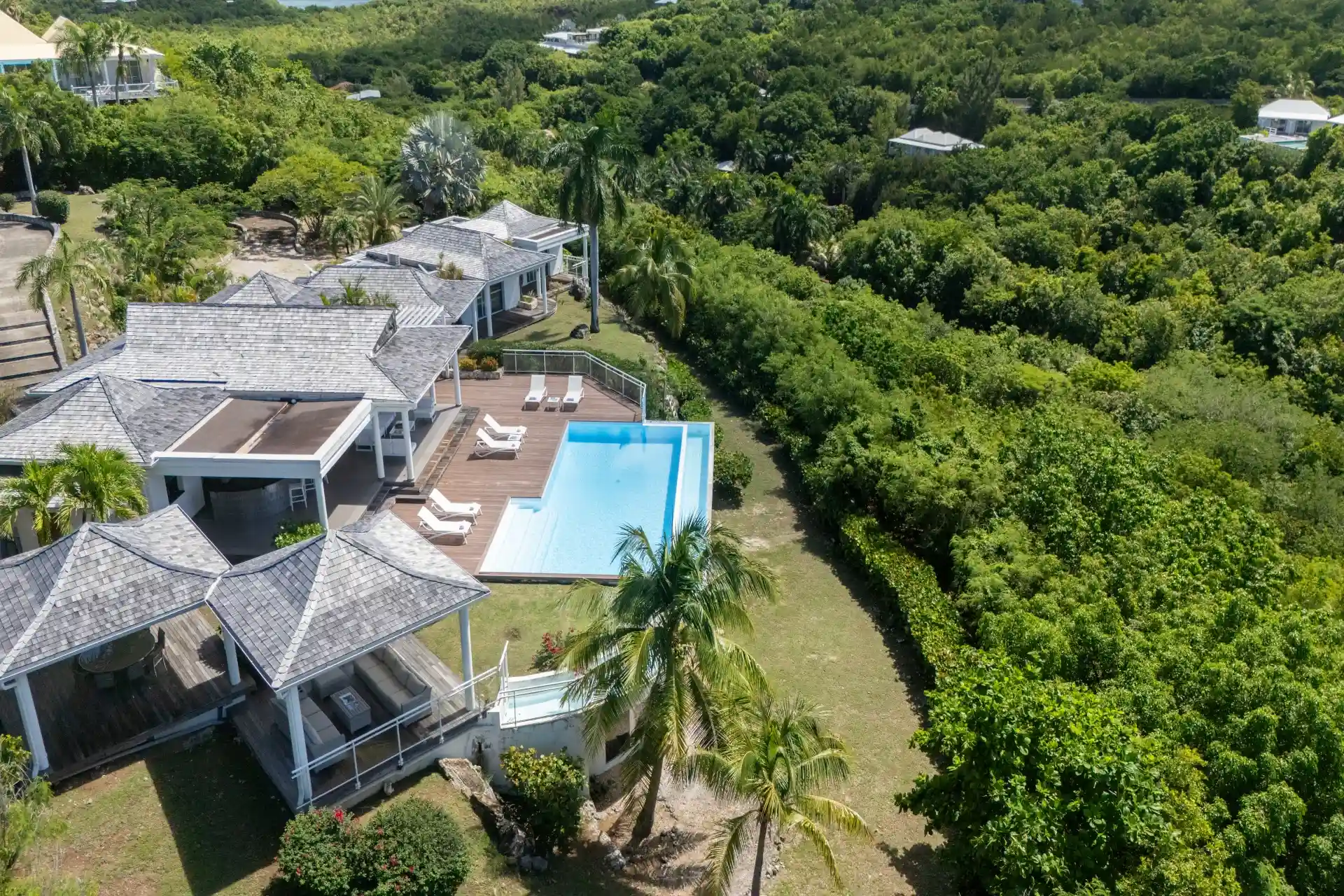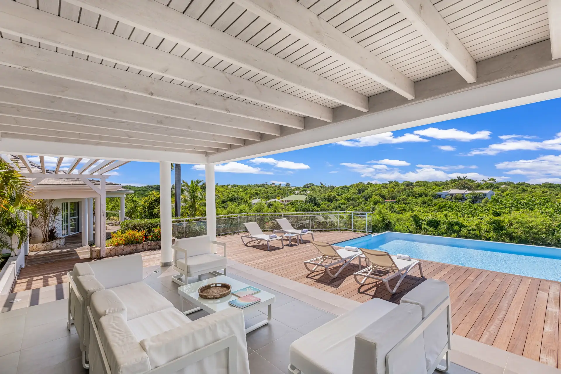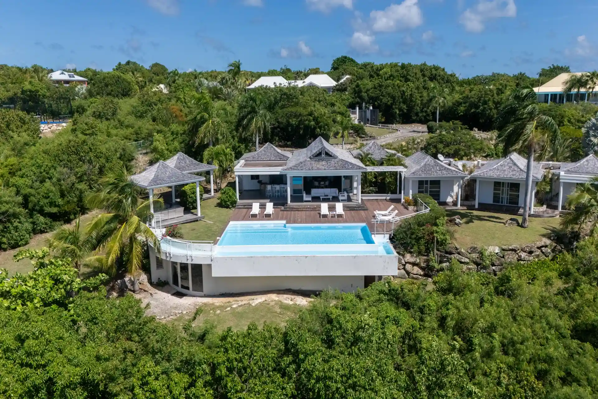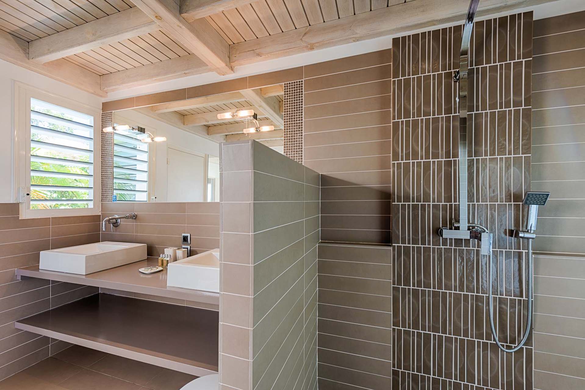 The terrace is stunning and the large infinity pool faces Baie Longue and the Caribbean sea with gorgeous sunset views.