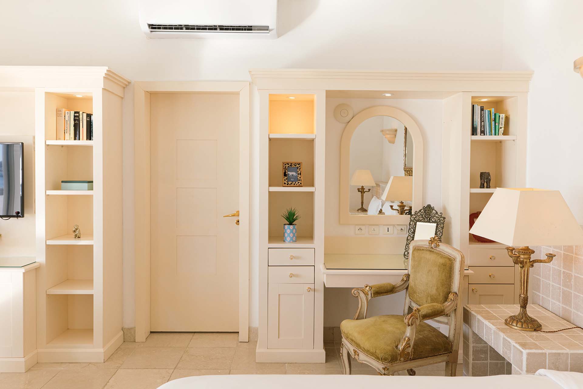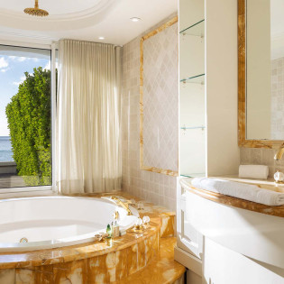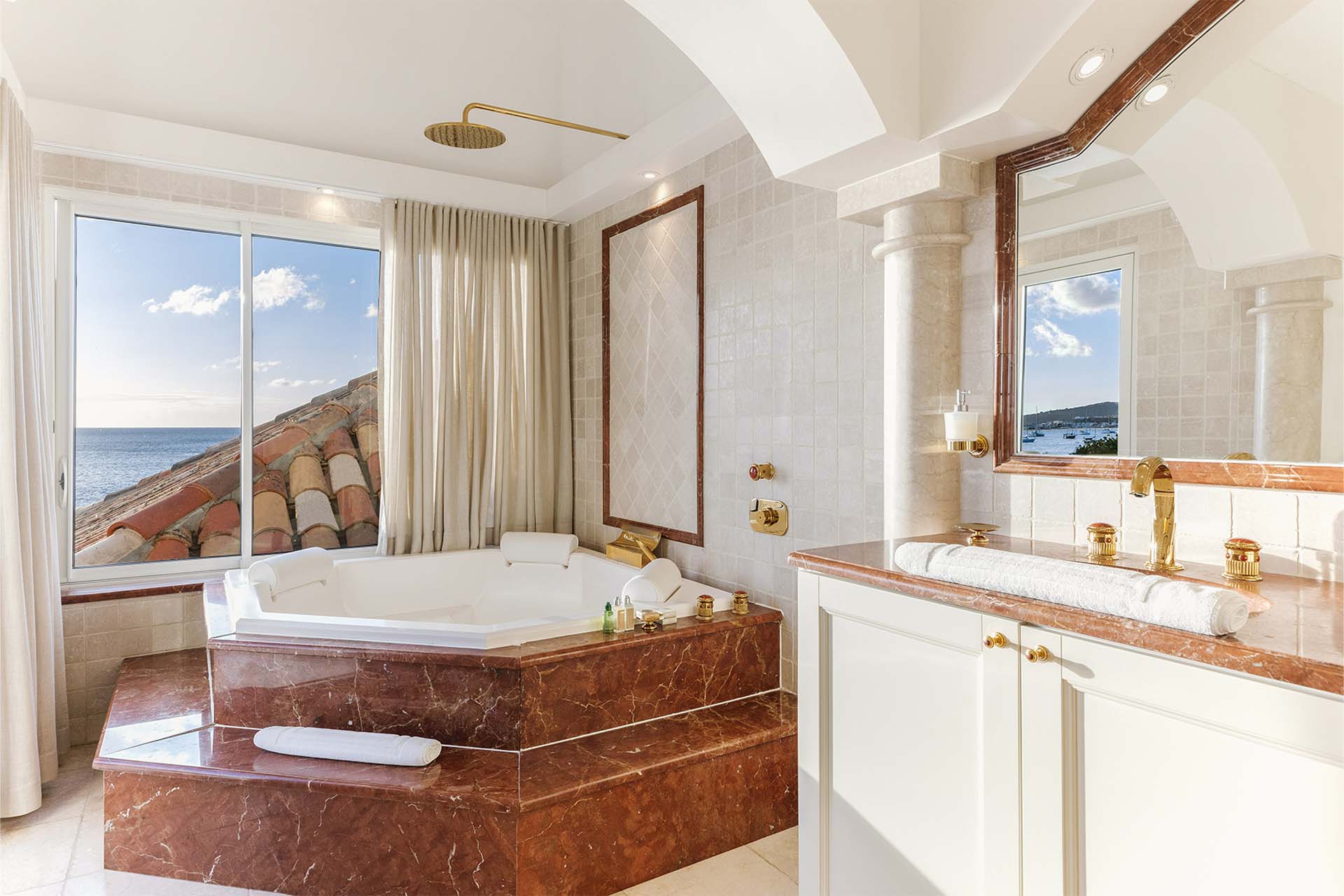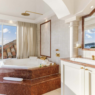 Each bedroom has a large plasma TV with satellite service and an ensuite bathroom. Two bathrooms feature a bathtub and shower. Four bedrooms have king-size beds. The fifth bedroom is designed as a studio with twin beds, which is ideal for staff or young adults.