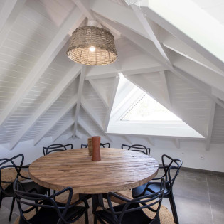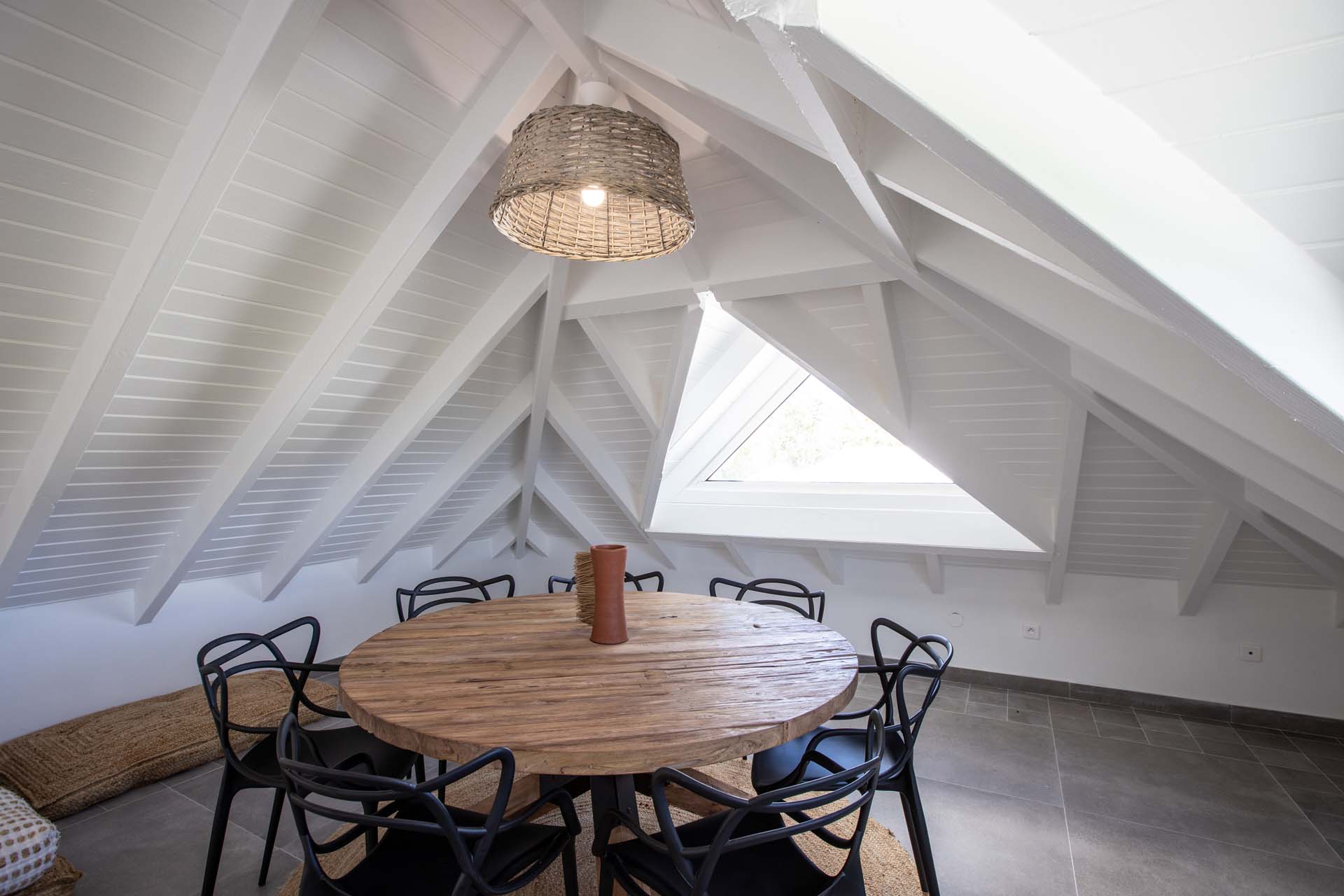 There are dual dining spaces, one is situated upstairs, while the other is positioned outdoors and incorporates a barbecue area, an optimal choice for open-air dining to revel in the stunning ambiance.