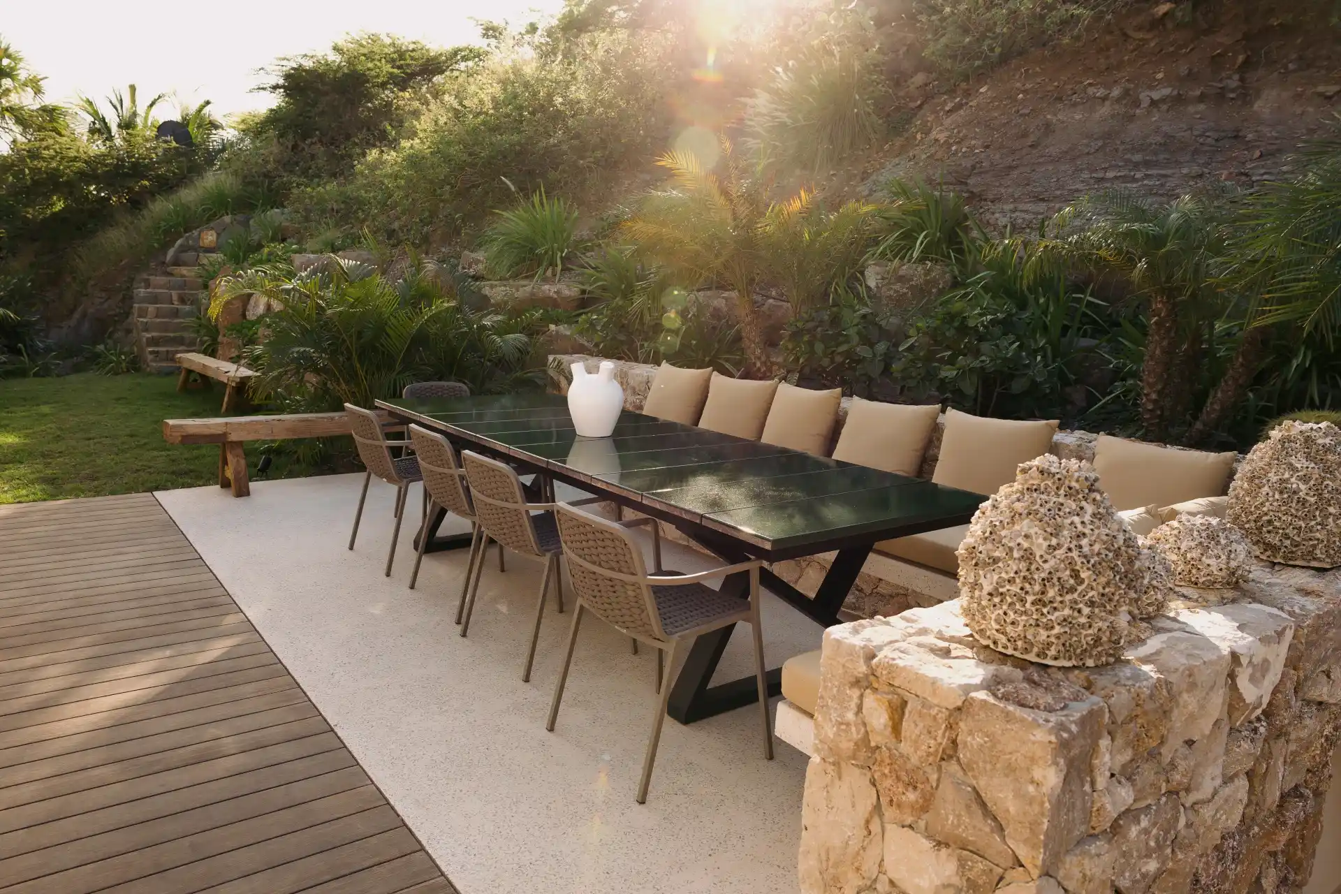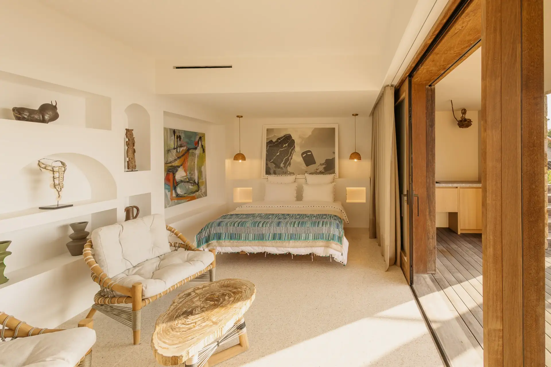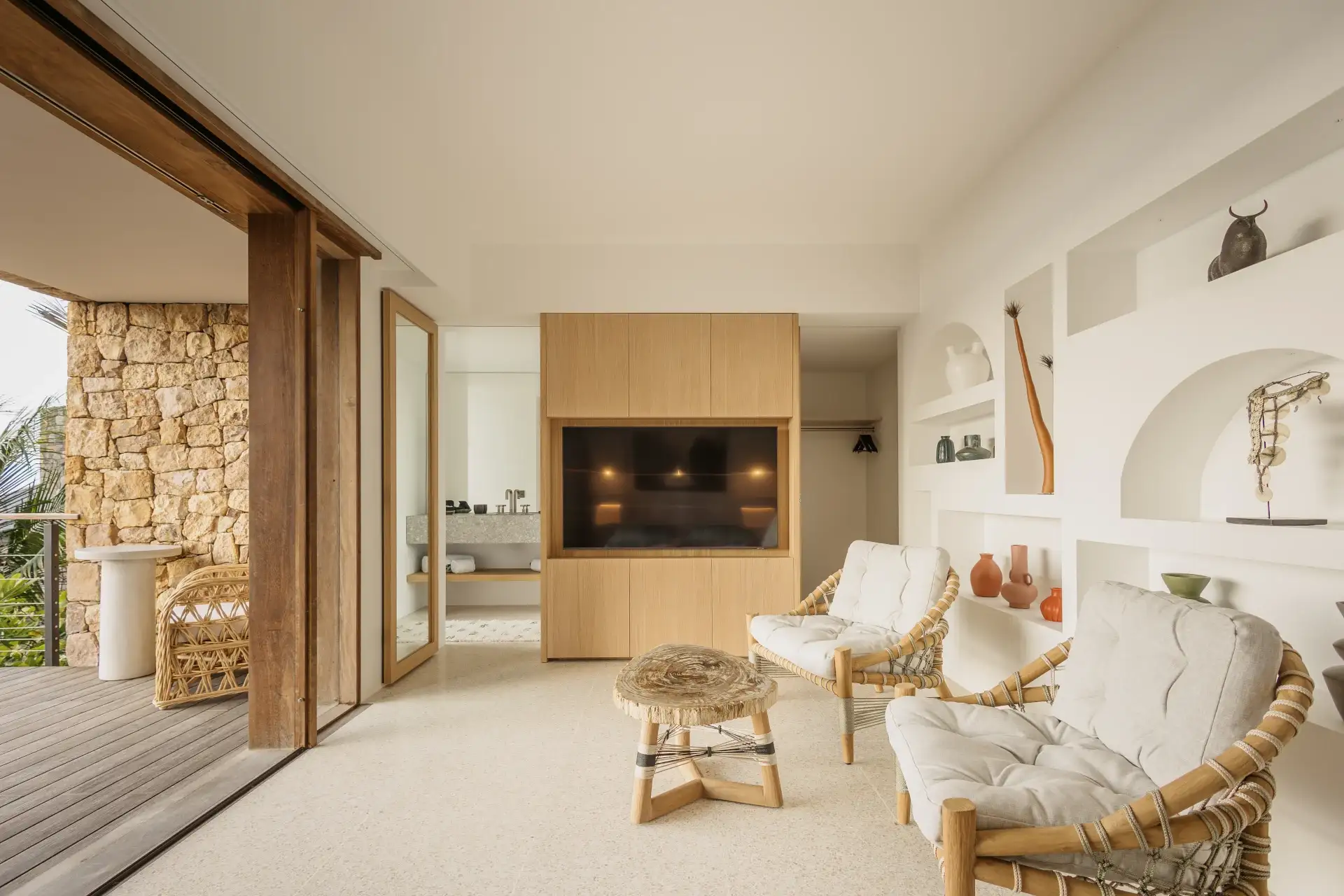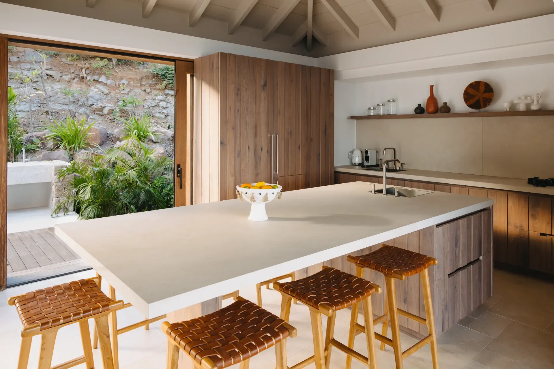 Thoughtfully designed to harmonize with its natural surroundings, the villa pairs authentic materials like stone and wood with refined, contemporary architecture. Each space has been carefully crafted to create a soothing, elegant atmosphere where luxury and tranquility blend effortlessly.