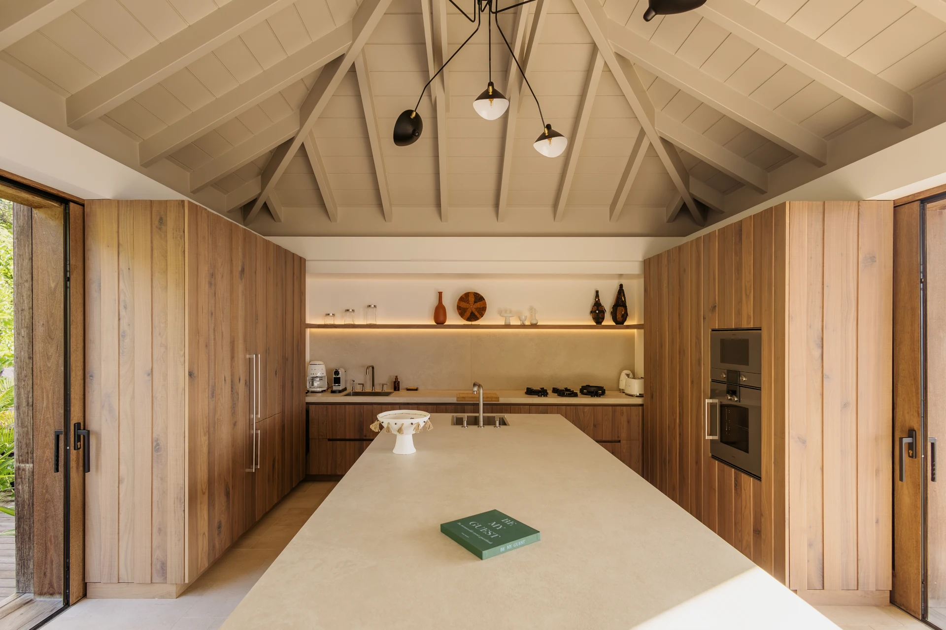 Bright and airy interiors open wide to the outdoors, allowing ocean breezes and natural light to flow through every room. The living area and kitchen can be closed off separately and are fully air-conditioned for your comfort. The tastefully appointed bedrooms invite rest and relaxation, promising peaceful nights after days spent surfing or exploring the island.
