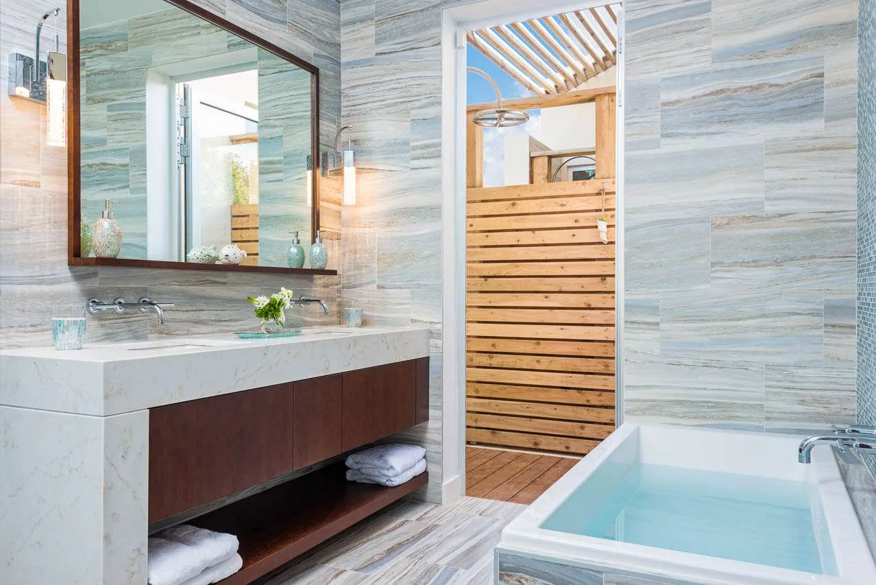 There are four master suites, each of them with a king-sized bed and direct access to the pool terrace. Every room also comes with a spacious ensuite bathroom, complete with an indoor/outdoor shower.