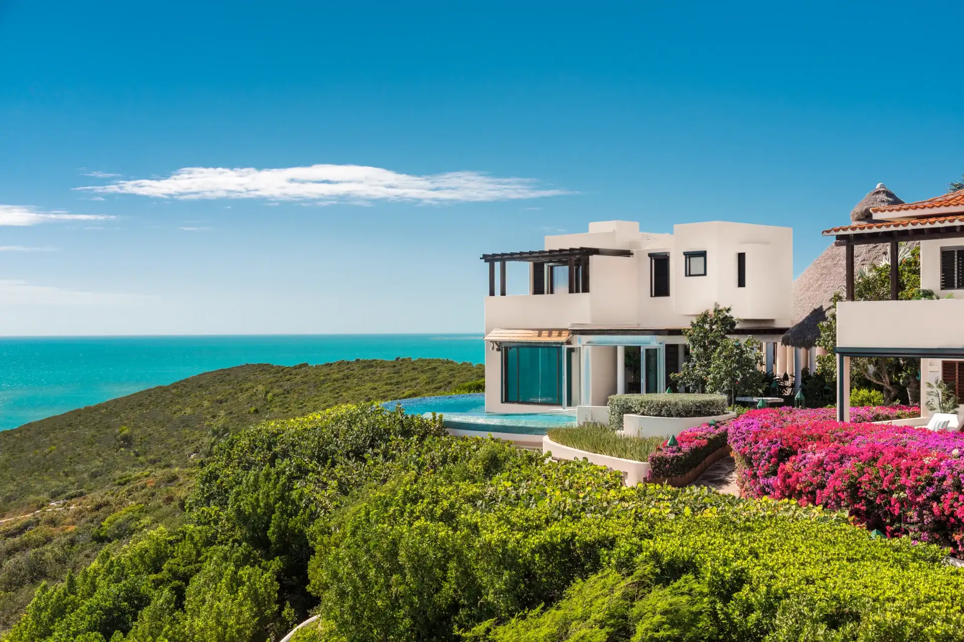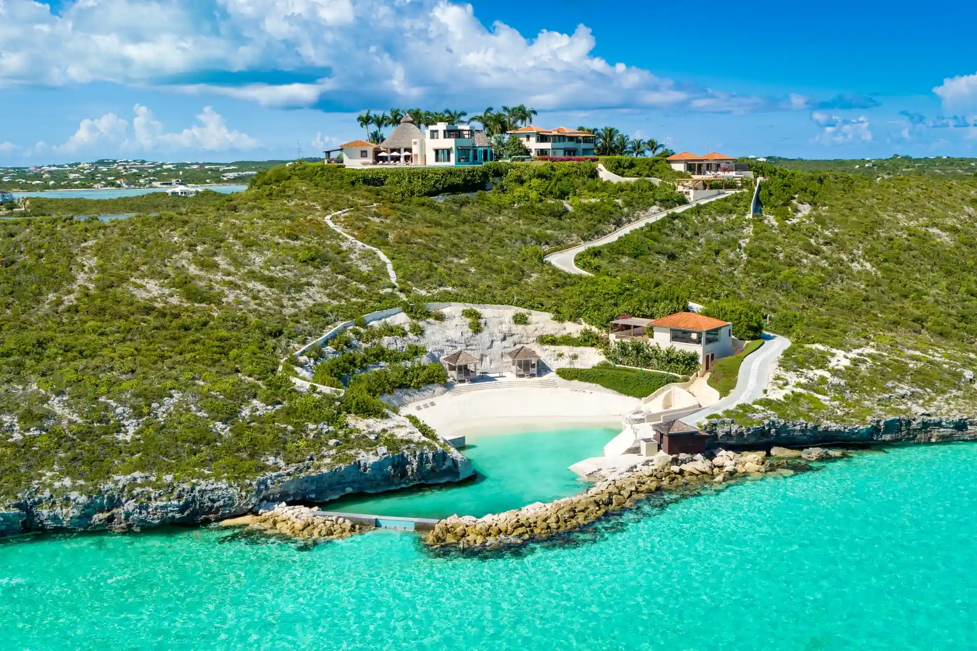 Enjoy a private slice of paradise at Villa Bajacu (villa code: TC BAJ), a luxurious and contemporary 6-bedroom villa located in Turtle Tail, Providenciales. Set in 11 acres of lush, tropical vegetation, with stunning ocean views from its hilltop location, this villa also offers peerless privacy.