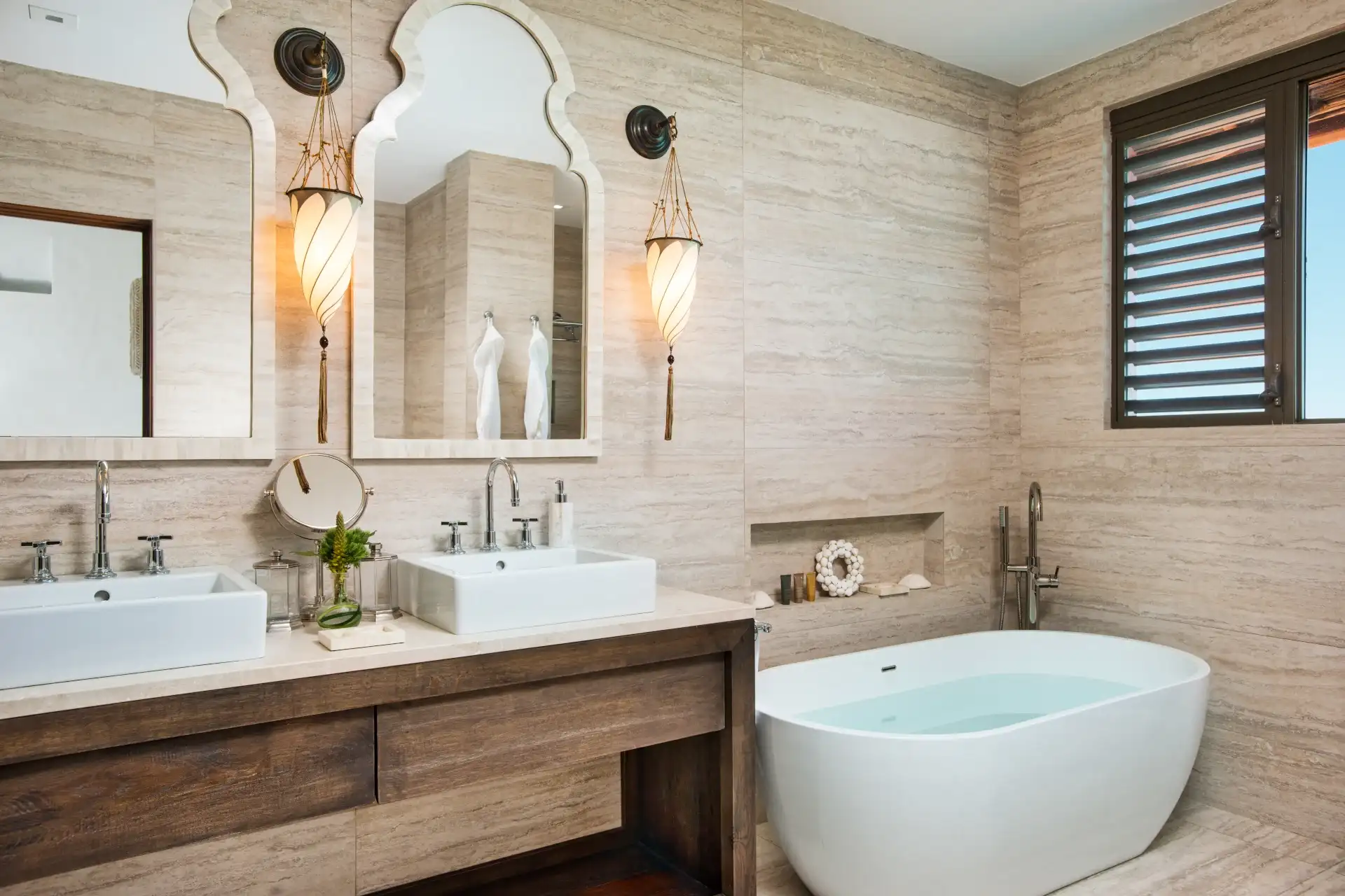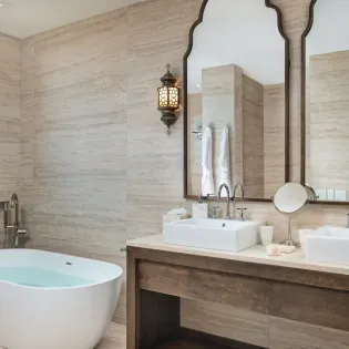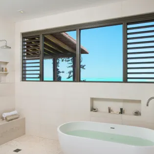 There’s a total of 6 bedrooms at Villa Bajacu, accommodating up to 12 guests. Each has its own air-conditioning and luxurious ensuite bathroom, with either a rainfall shower or lavish freestanding tubs. The bedrooms also boast flat-screen TVs, walk-in closets, and private terraces.