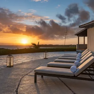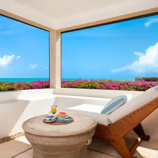 Jumping in is recommended, offering a refreshing way to enjoy those spectacular views of the Caribbean. Basking in the island sun is also easy, with a selection of loungers lining the terrace.