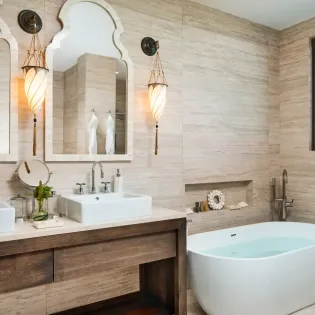 Four of the bedrooms have palatial king-sized beds, while the other 2 have plush doubles. Each is a quiet oasis to retreat to at the end of the day, unwinding with a relaxing drink on a terrace or watching a movie from underneath the soft sheets.