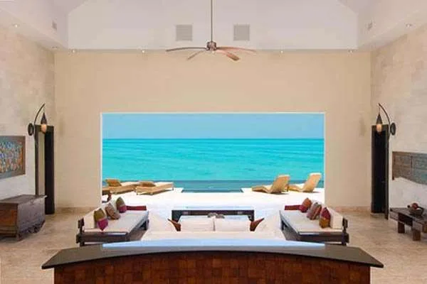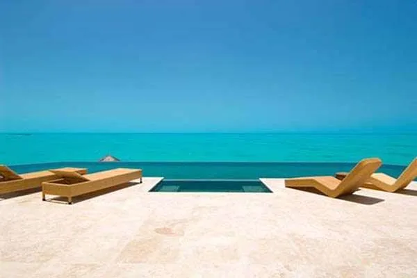 Outdoor Features: Stepping outside, the star of the show is the oversized infinity pool, constructed from emerald stone that gives the water the same color as the ocean. Spanning the length of the property, it extends to meet both the sky and the glittering Caribbean below.