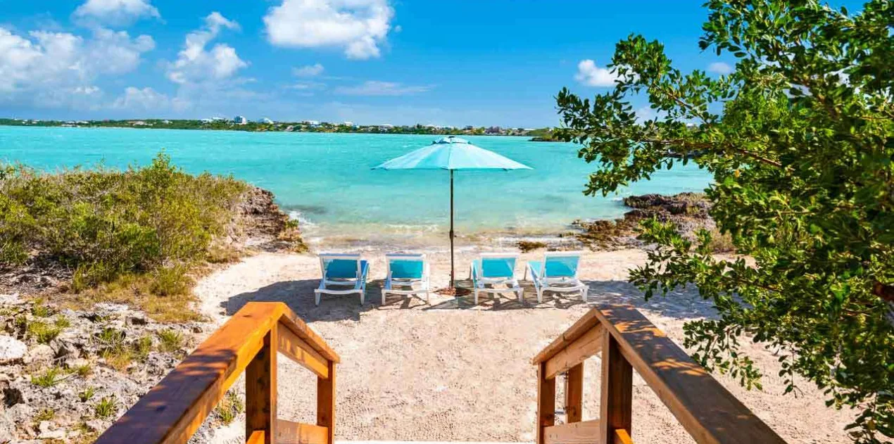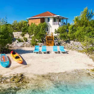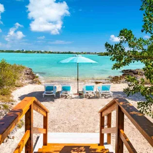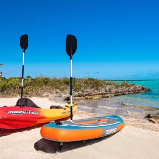 Loungers with parasols on the sand let you soak up the island rays or kick back with a tropical cocktail, gazing out at the view. One of the best ways of experiencing Chalk Sound National park is via kayak. Bashert Cottage has two, letting you explore the waterways and islands home to the Turks and Caicos Iguanas.