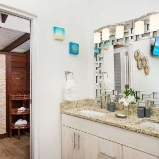 Located right on the water, this villa has its own small private beach. You are just 5 minutes away from Sapodilla Bay and Taylor Bay beaches.