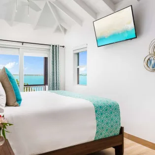 The master suite is upstairs, with a deluxe king-sized bed promising a restful night of sleep. The calming space is minimalist and chic; the perfect area to relax and unwind after a day of exploring the island.
