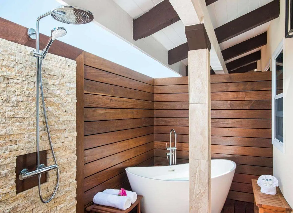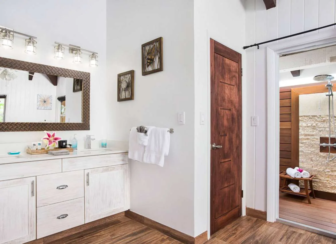 There are 3 bedrooms at Villa Bashert, each with an ensuite bathroom, air-conditioning, ceiling fans, and TVs. Every bedroom is perfect for some rest and relaxation each evening. An exotic outdoor shower is a pleasant addition to the ensuite.