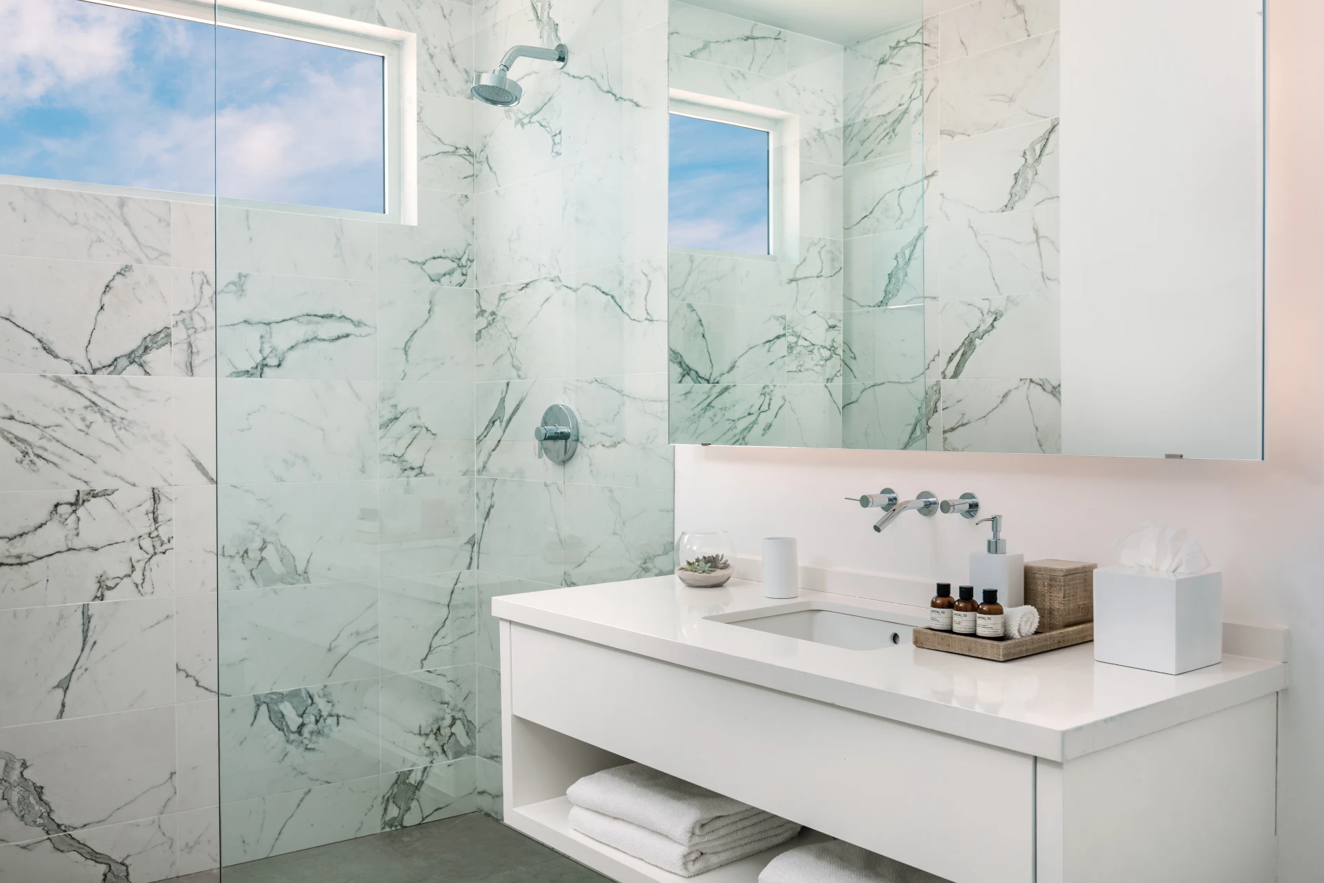 The roomy kitchen is stylish and modern, well-appointed with all the amenities you need to prepare chef-level meals. A large kitchen island doubles as a casual breakfast bar, a space to enjoy an early morning espresso as the sun rises.
