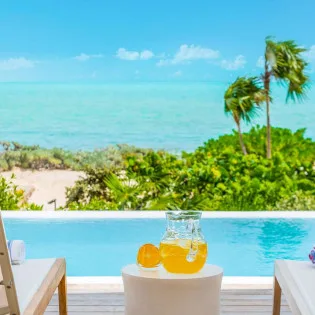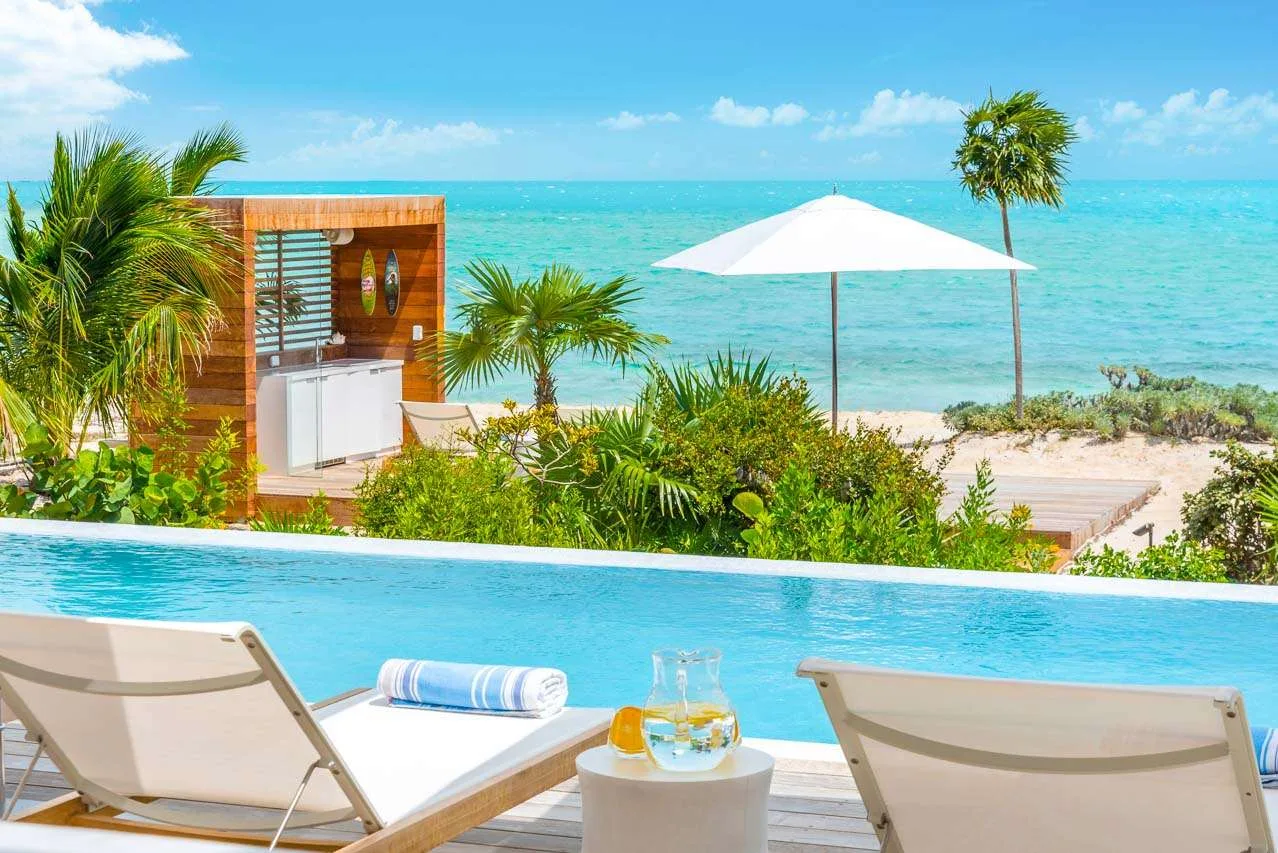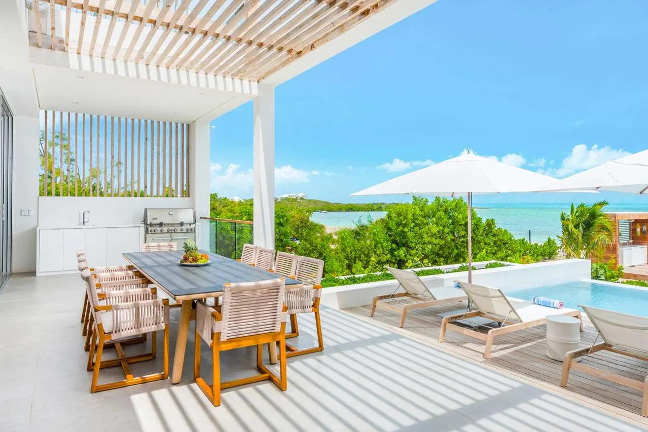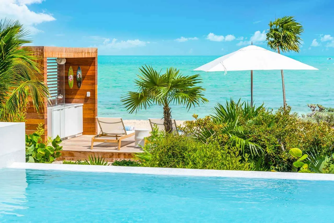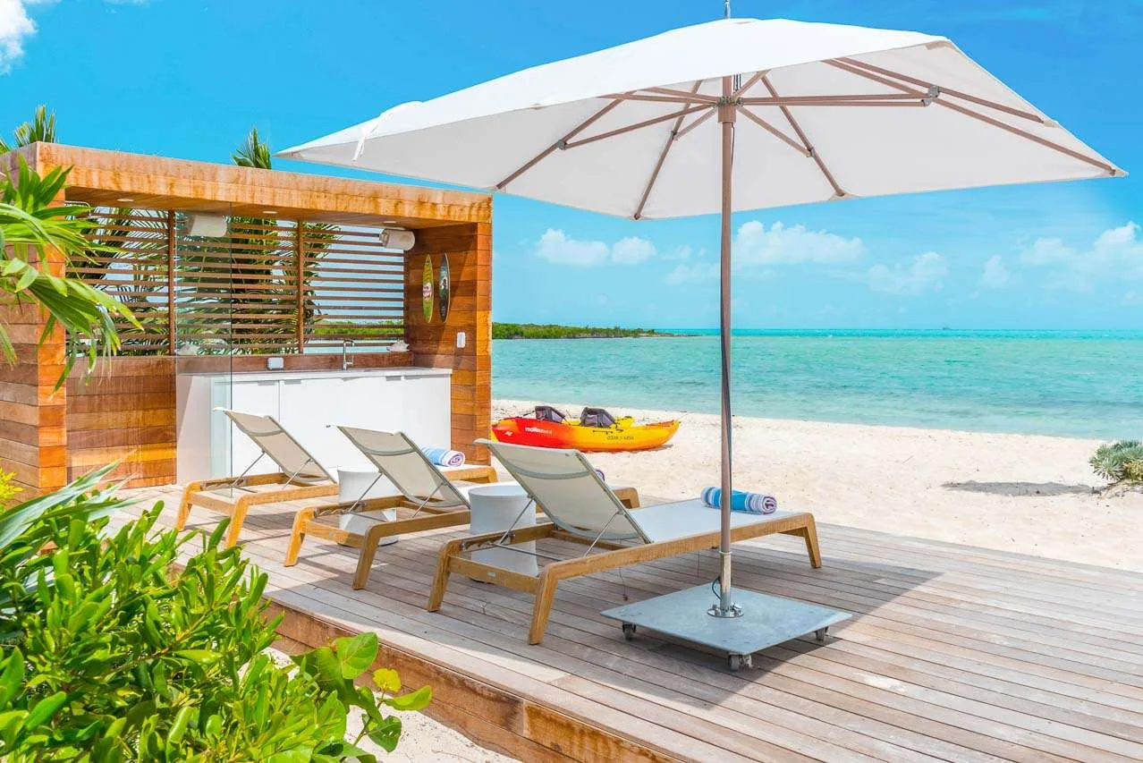 This villa includes an outdoor shower, fire pit, air-conditioning, fast Wi-Fi throughout the house, and a telephone with complimentary local and long-distance calls. The villa also enjoys a daily cleaning service, and our concierge is happy to help organize anything else during your stay. As part of the Beach Enclave gated community in Long Bay, you will have access to a few bonuses help elevate your stay even further. There’s an onsite reception office, water sports facility, a well-equipped yoga and fitness pavilion, and on-call private chefs, butlers, and housekeepers. On top of that, up to 3 guests also have a choice of one of the following activities with Big Blue: Kiteboard lesson, Caicos Cays Cruise, Snorkel or Kayak Eco-Tour, or a SUP Eco-Tour (valued at $700).
