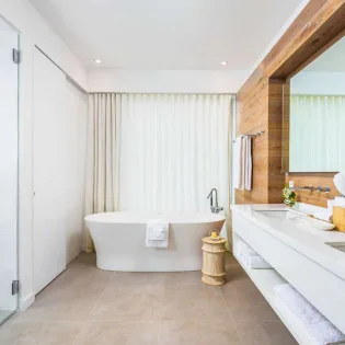 Each Beach Enclave Villa boasts generous living spaces that make the most of stunning ocean views glimpsed through lush tropical gardens. Steps away you’ll find the alluring Long Bay Beach, with crystal-blue water just beyond.