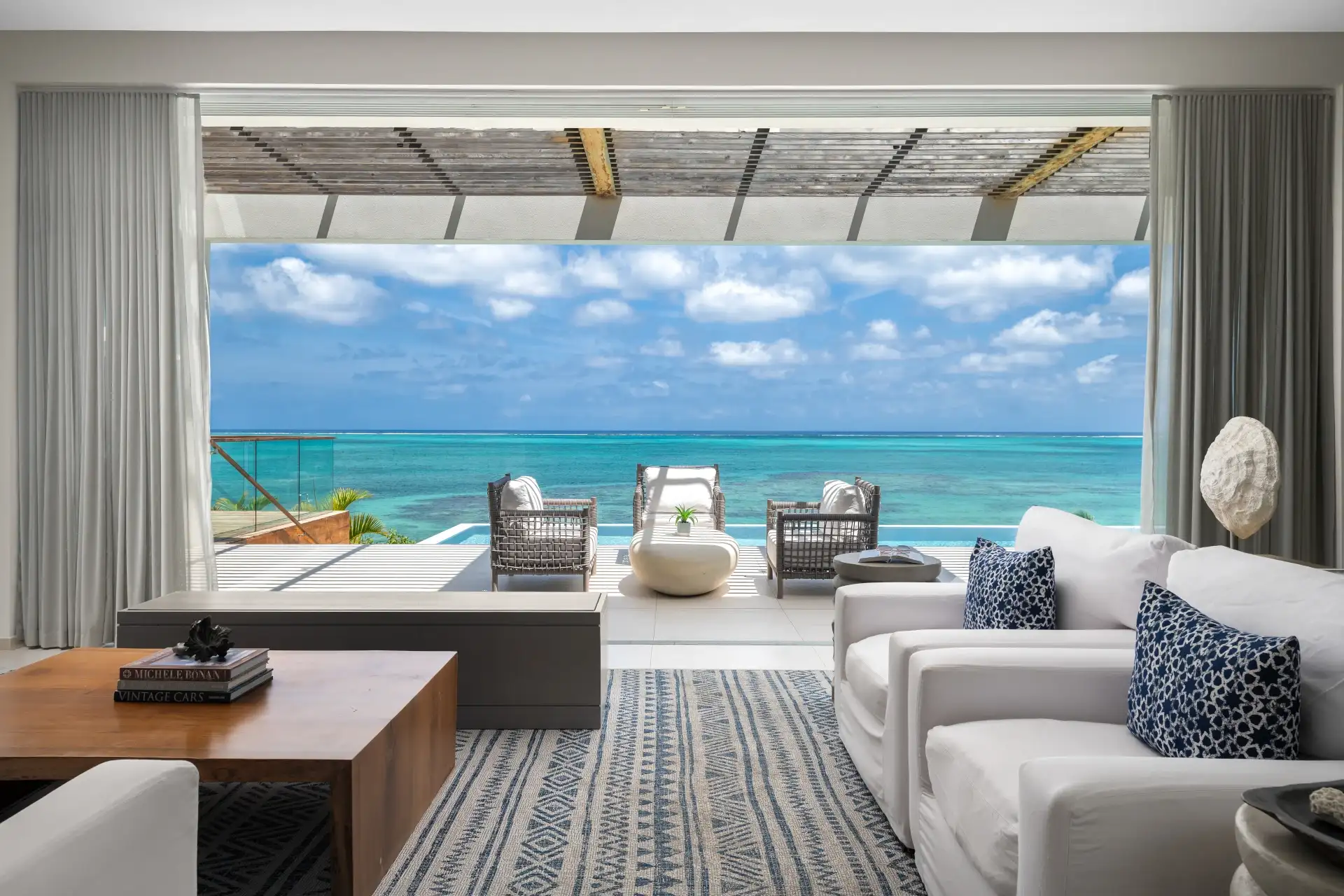 A sound system extends outside, letting you listen to rhythmic beach reggae as you sunbathe on the reclining loungers. The heated, infinity-edge pool is pure luxury – you’ll be tempted in for a refreshing dip as soon as you step outside.
