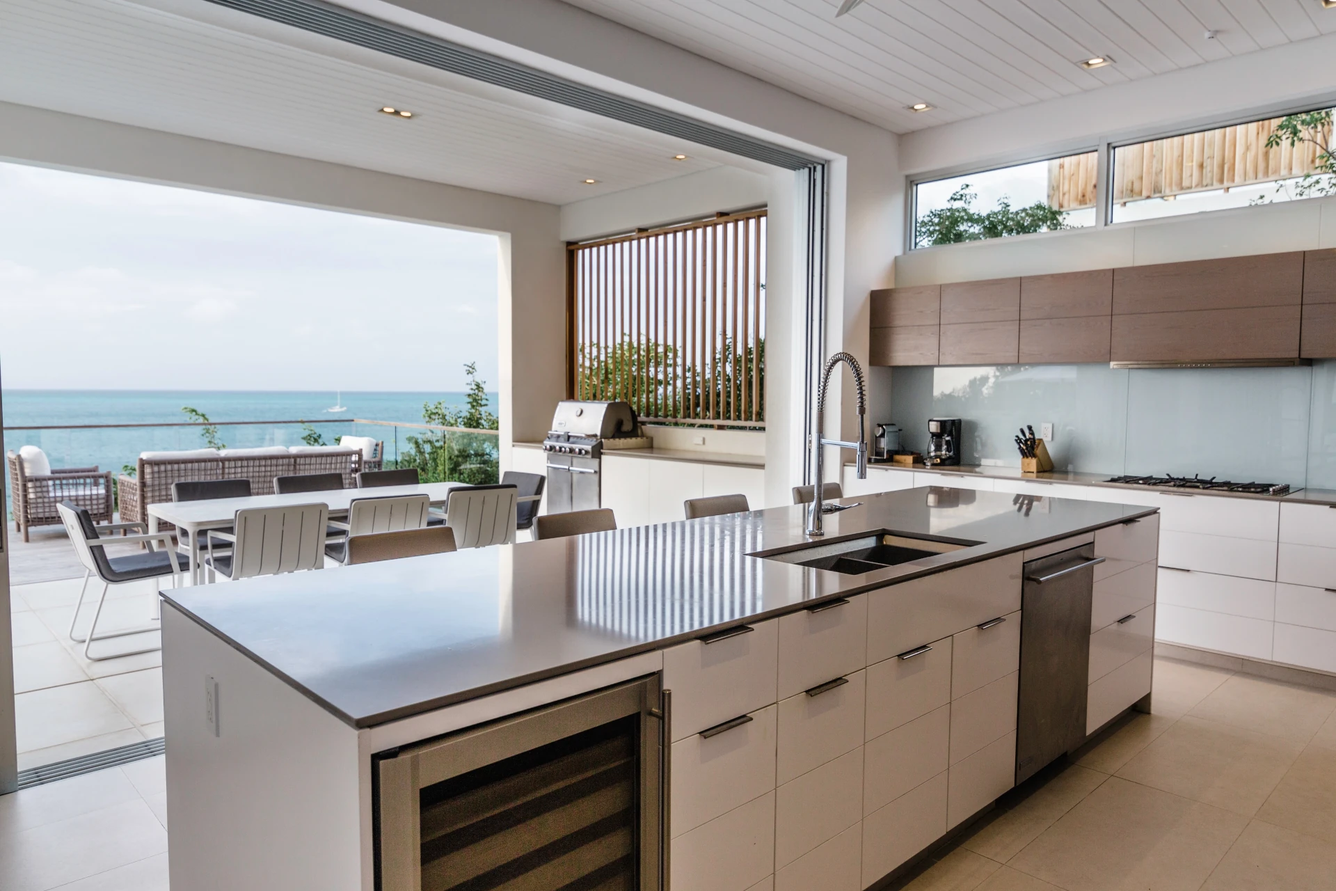 The fully-equipped kitchen features chef-caliber appliances, letting you cook with ease. Incredible ocean views will inspire you to get creative with Caribbean island flavors. The large kitchen island doubles as a breakfast bar, offering a nice and casual spot for a morning coffee or fresh fruit.