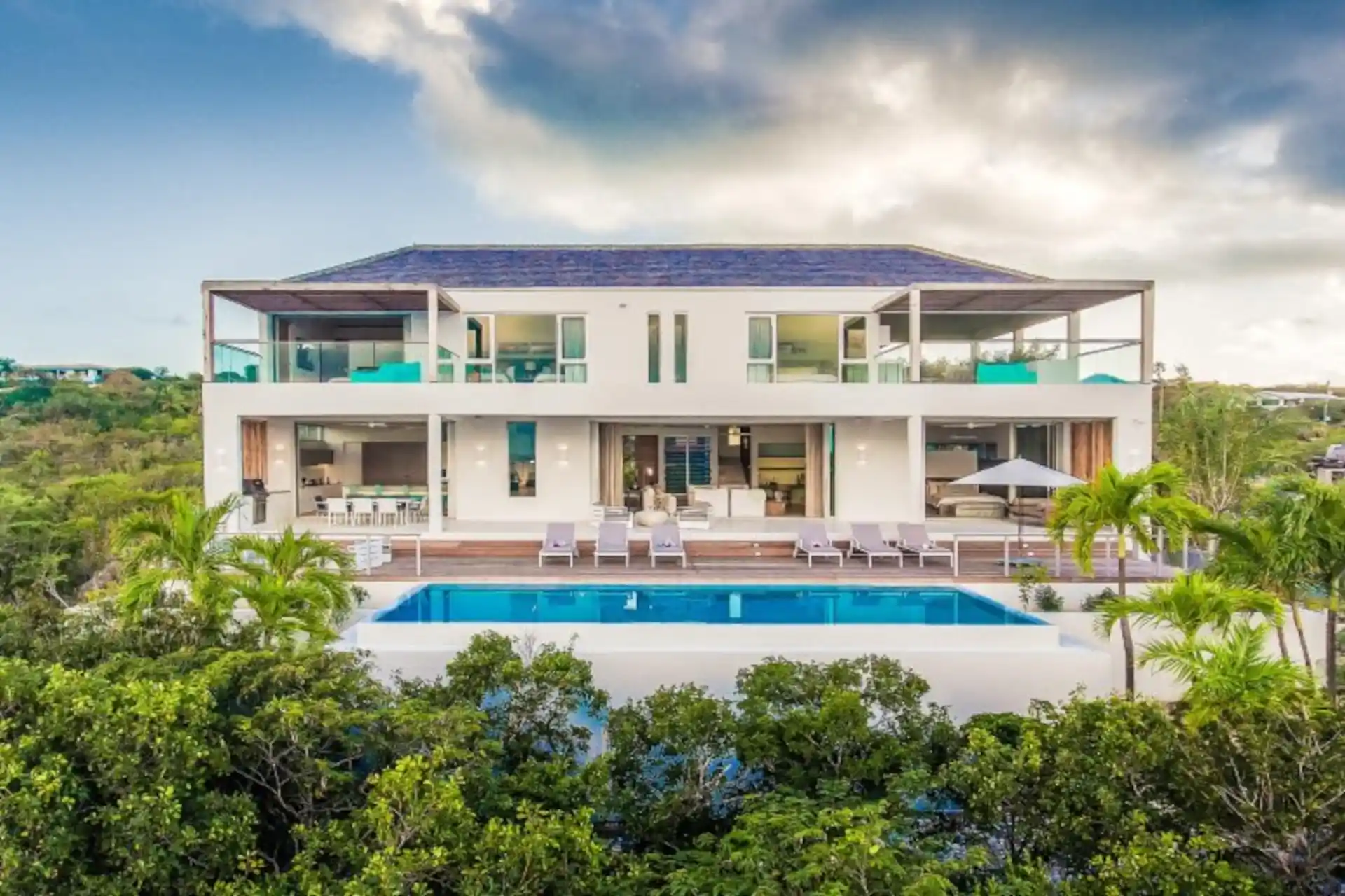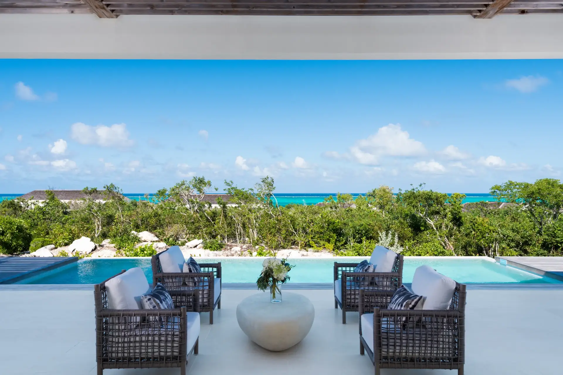 A sound system extends outside, letting you listen to rhythmic beach reggae as you sunbathe on the reclining loungers. The heated, infinity-edge pool is pure luxury – you’ll be immediately tempted in for a refreshing dip.