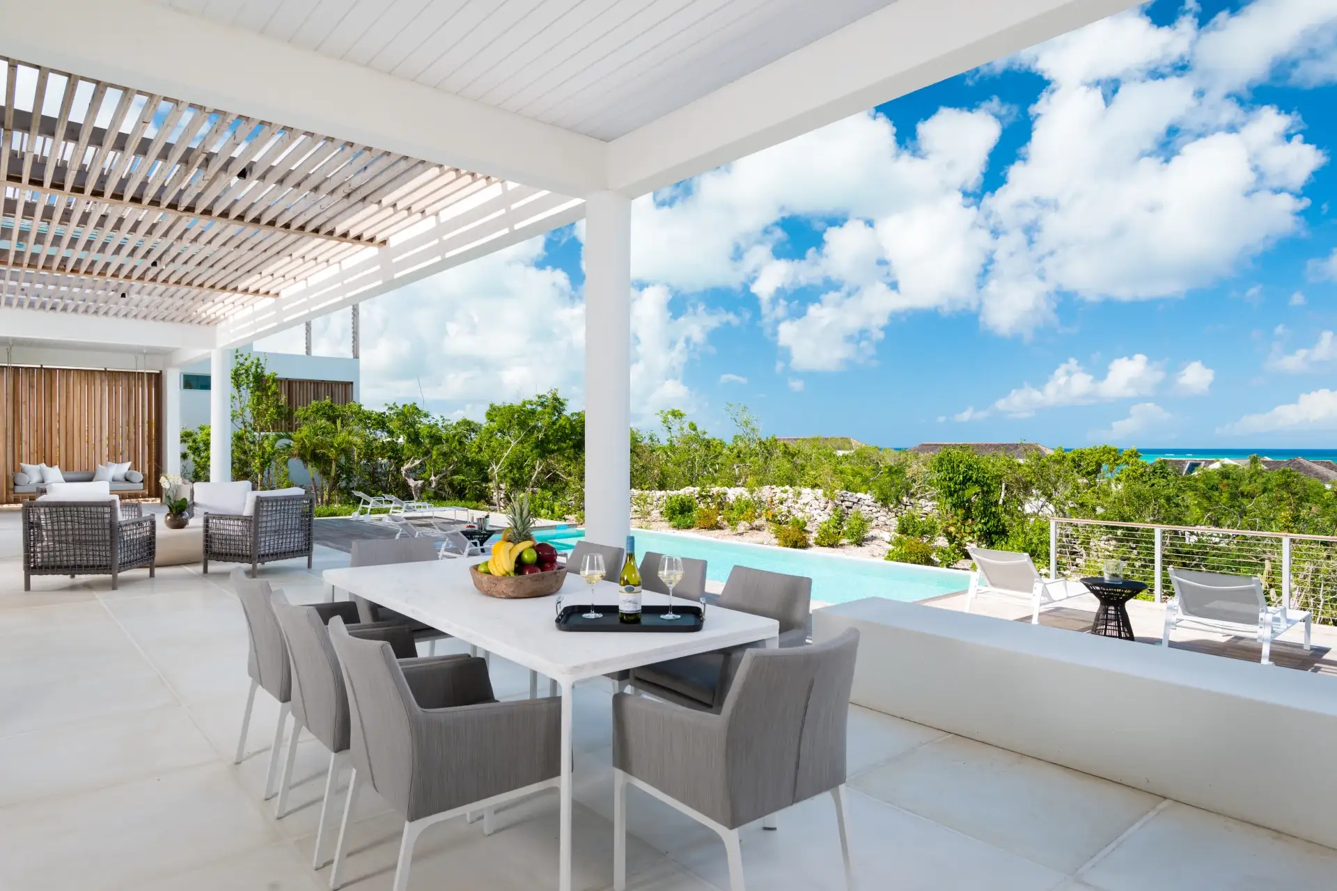 There’s an outdoor dining table as well, letting you enjoy the spectacular sunsets and balmy evenings that Turks and Caicos is known for.