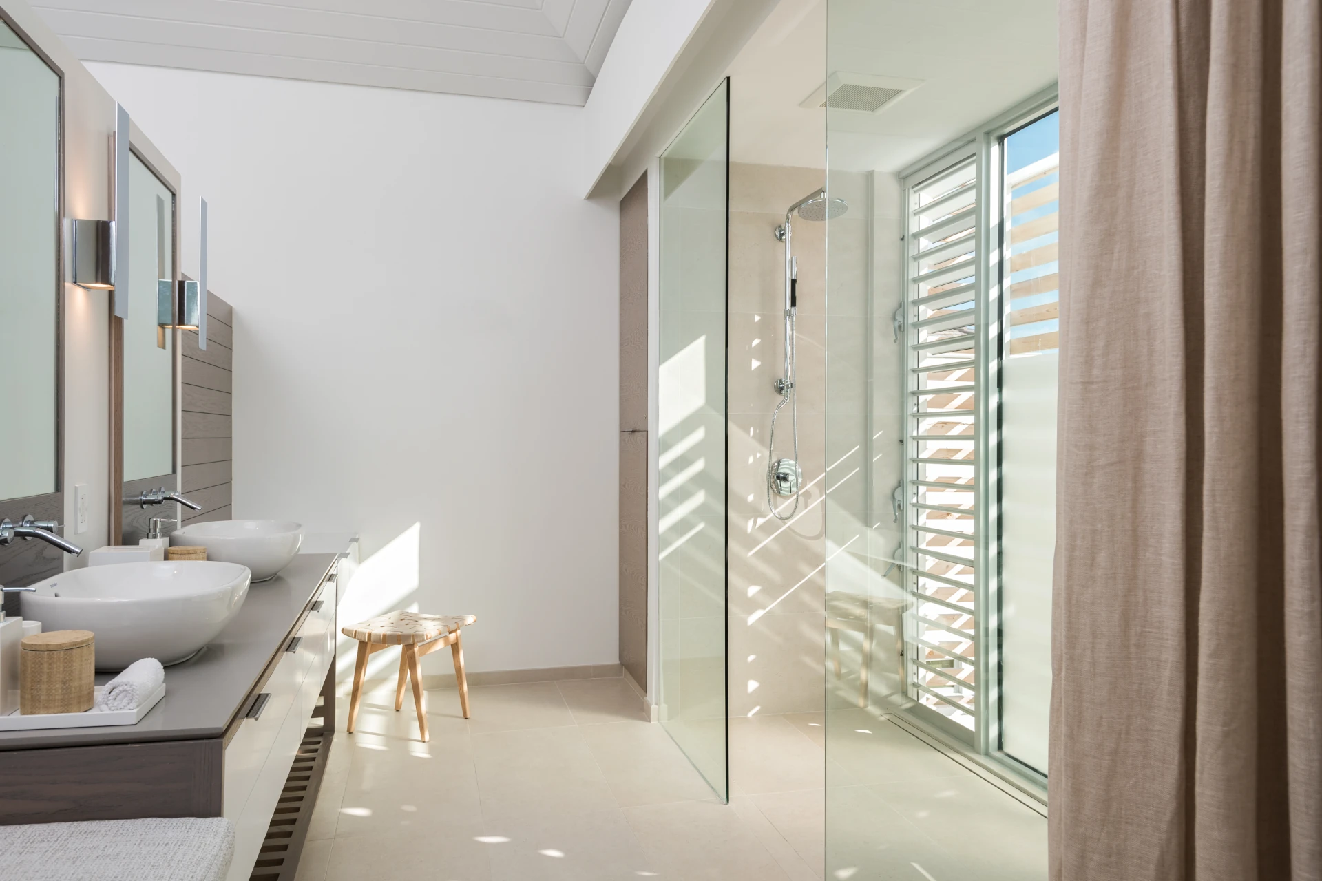 Your secluded stretch of sand, a private area unique to each villa, is just a short walk or golf cart ride away. The area is made even more special with a private wood deck, shaded by natural vegetation and sporting loungers, a summer kitchen, and an outdoor shower.