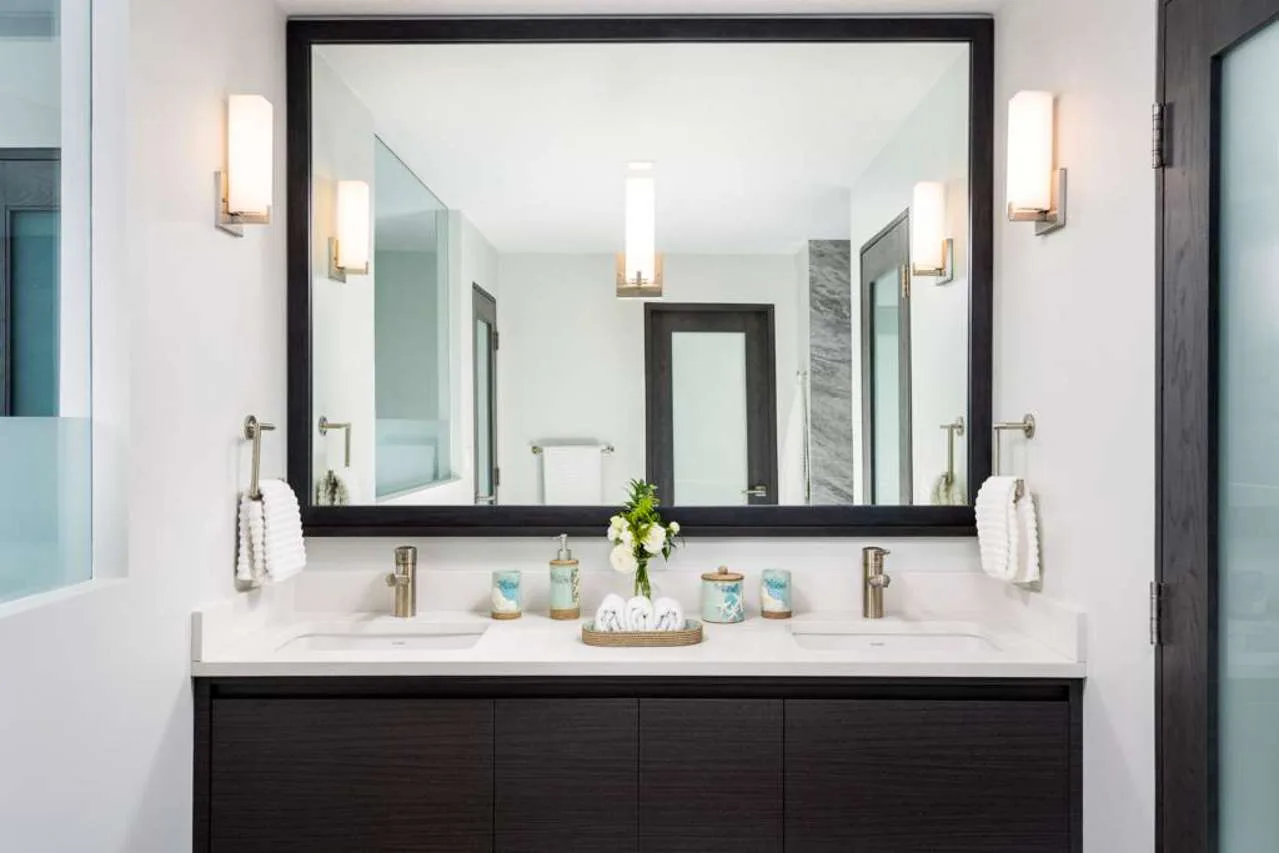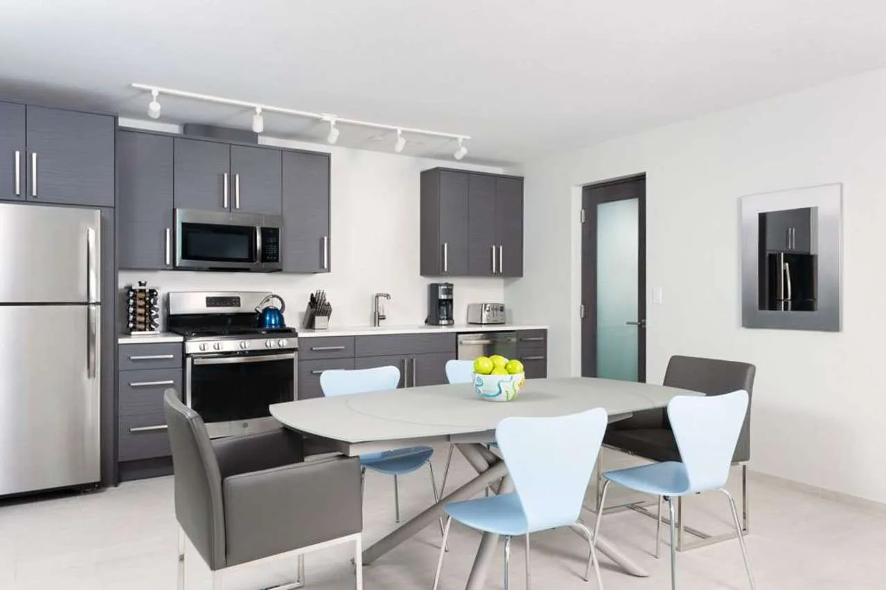 The villa has 3 bedrooms plus an office/4th bedroom on the main level and a separate 2 bedroom guest house. The guest house has its own luxury living room, dining room and kitchen, as well as 2 master suites with ocean views. Both the main house and the guest house have modern open floor plans with sleek interior and exterior design elements and furnishings.