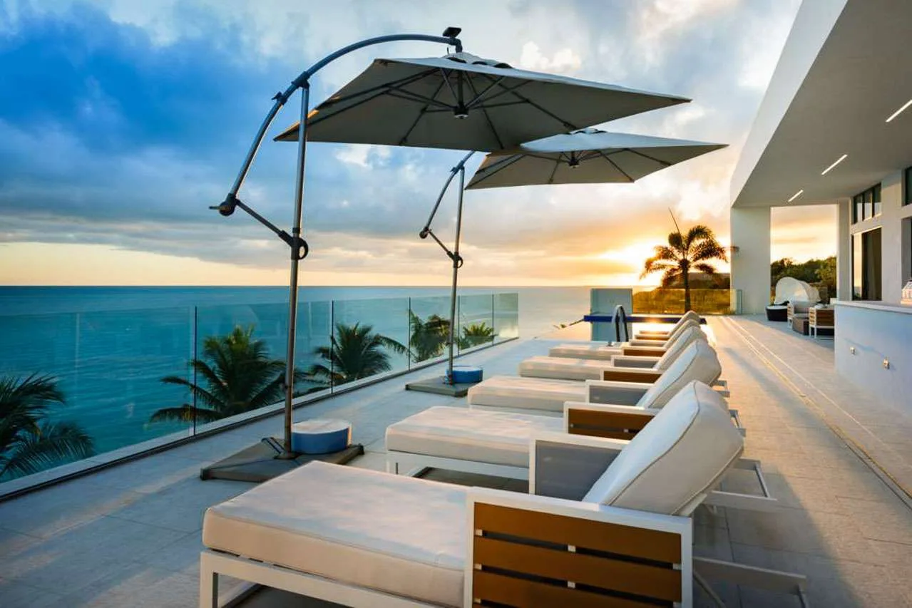 There is an oceanfront cabana located just feet away from the water’s edge as well as a kayak and paddle board shack with kayaks and stand up paddle boards, an outdoor shower, a day bed and a beverage center. There is a large outdoor fireplace, a built-in gas grill and a beverage center along with outdoor surround sound speakers.