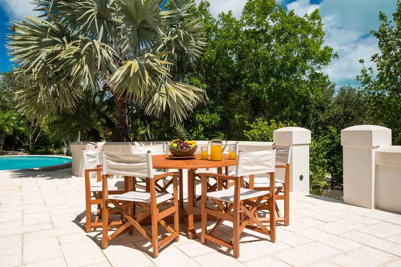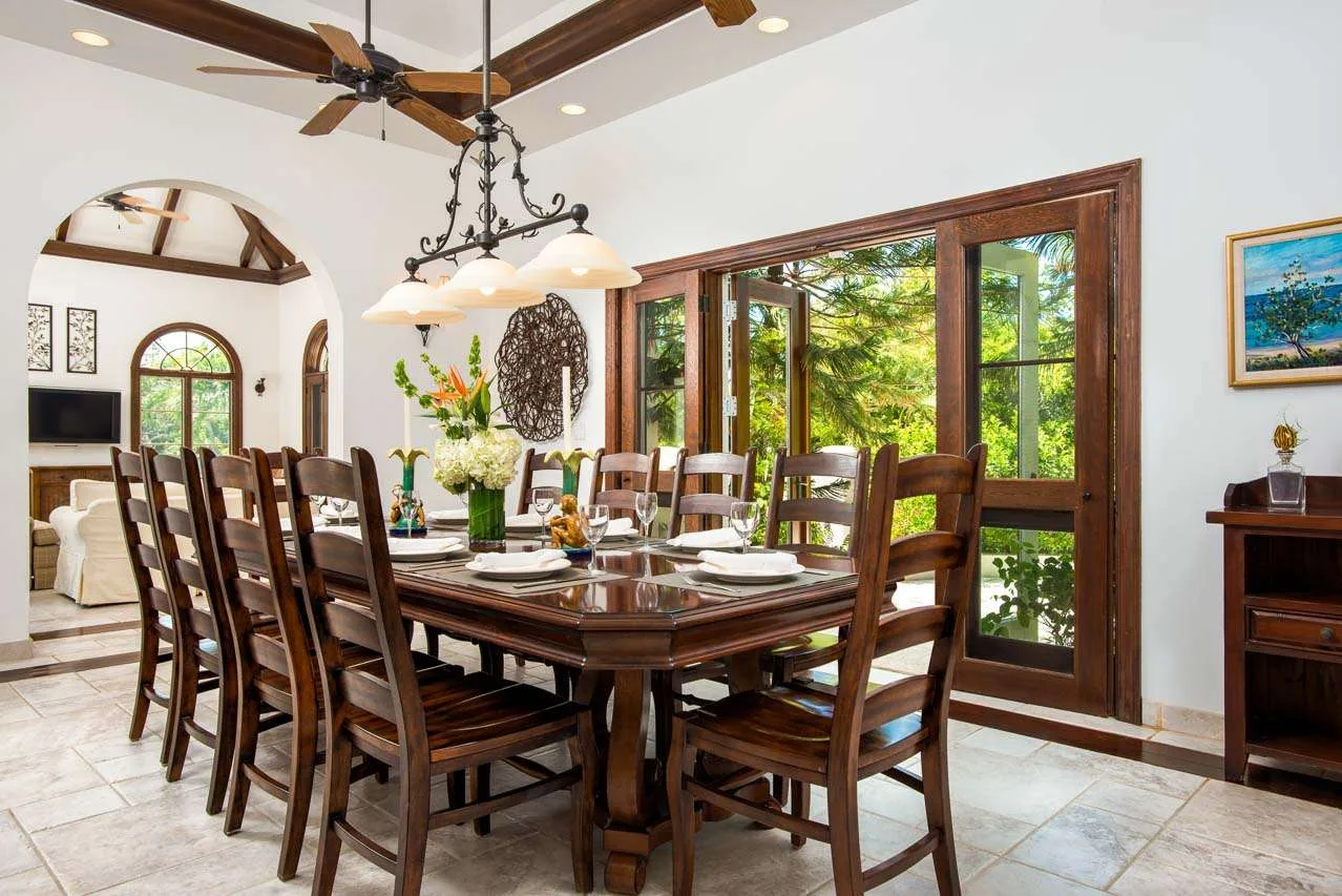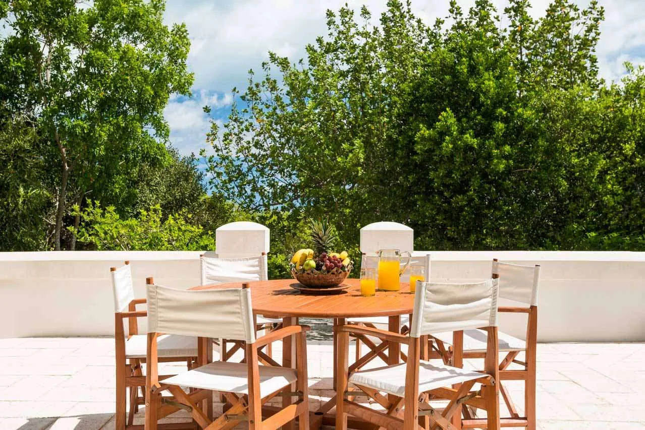 A small breakfast bar is a good spot for a morning coffee, while the indoor dining room table is magnificent for more formal dinner parties. If you prefer alfresco meals, there are also two tables outside, letting you enjoy a gourmet meal in the warm island air.