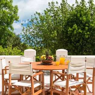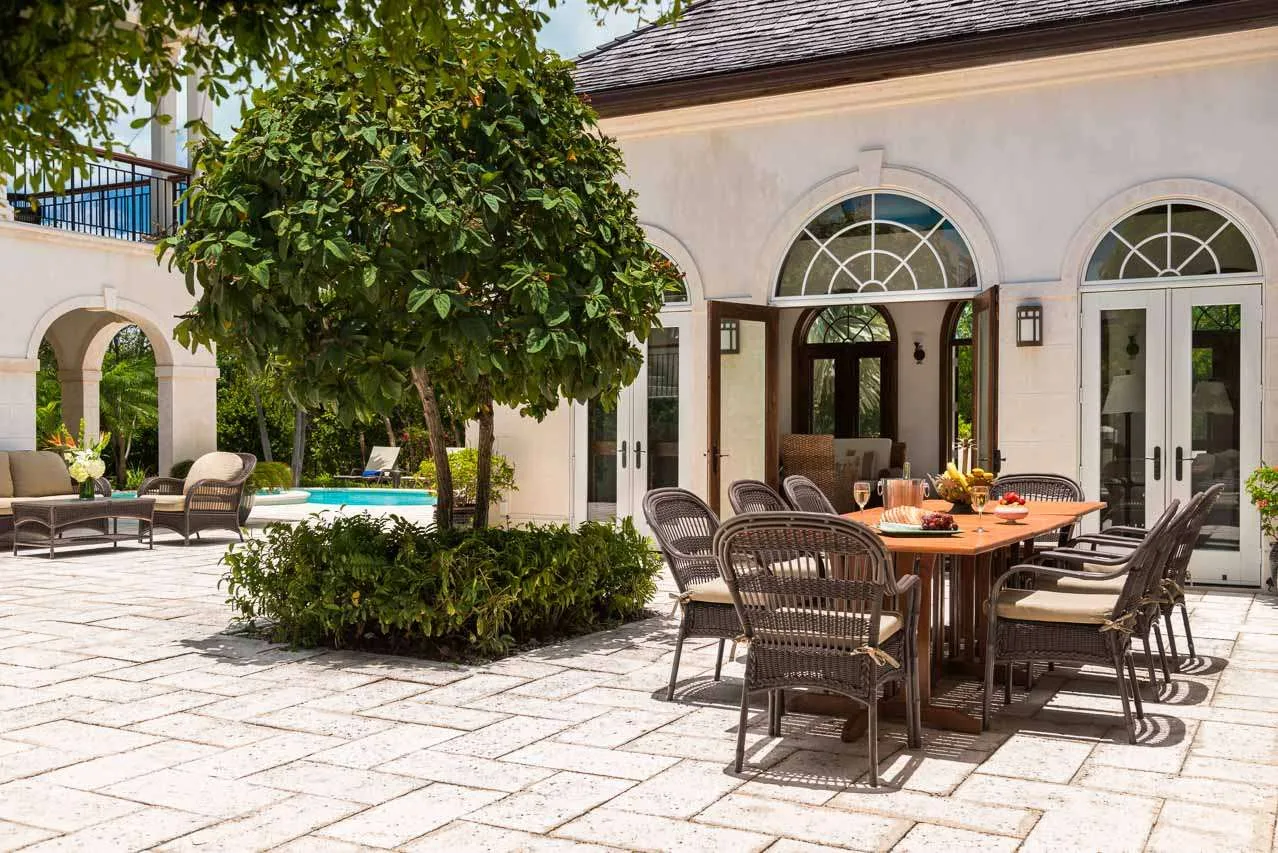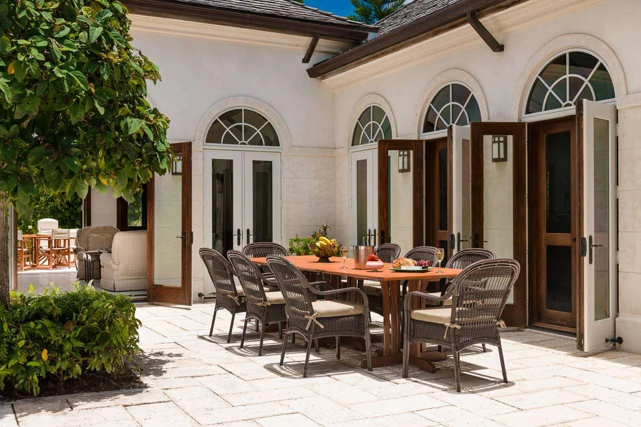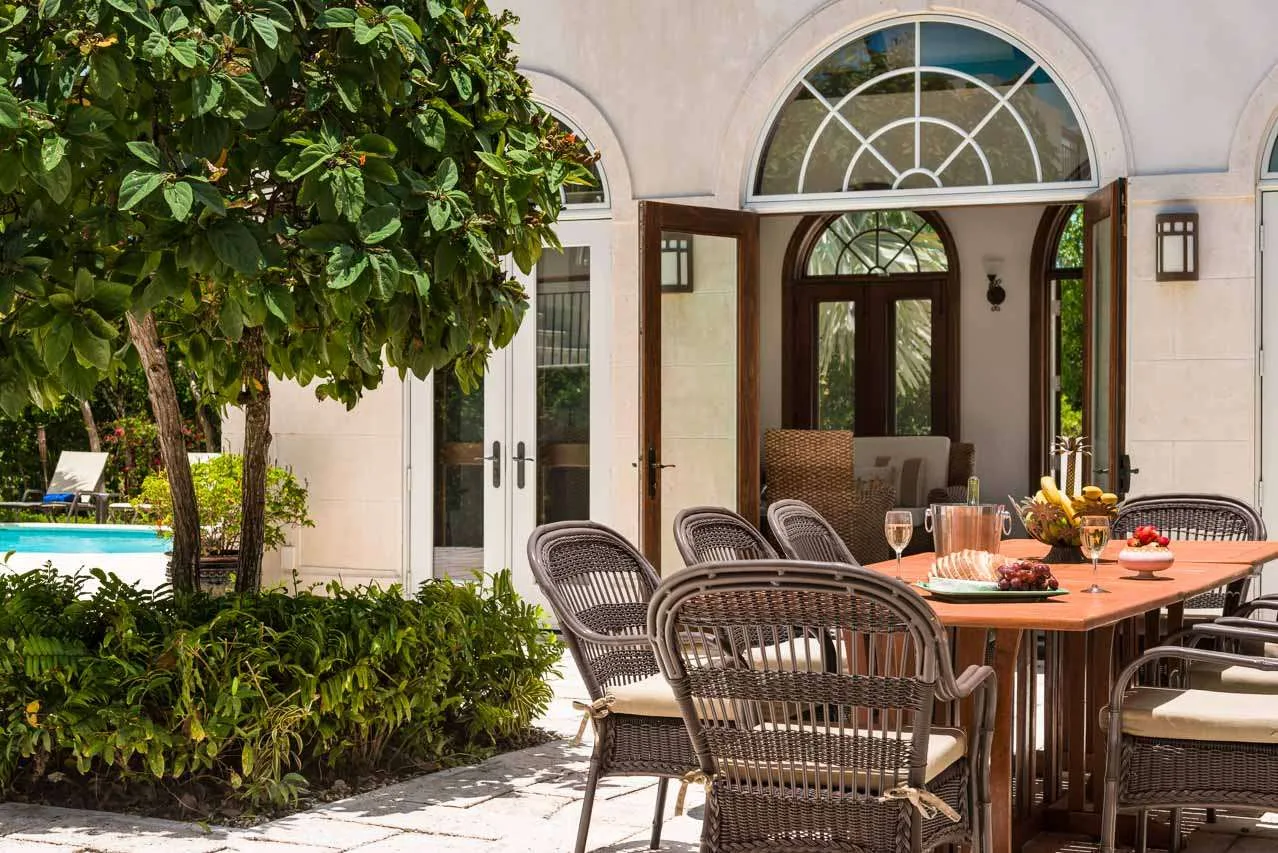 A small breakfast bar is a good spot for a morning coffee, while the indoor dining room table is magnificent for more formal dinner parties. If you prefer alfresco meals, there are also two tables outside, letting you enjoy a gourmet meal in the warm island air.