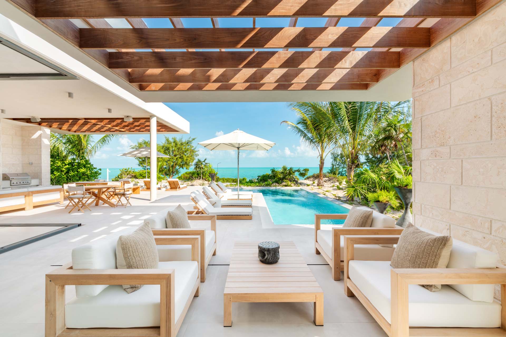 Set on the pristine shores of Long Bay Beach, Villa Dune House (villa code: TC DNH) offers direct access to powdery white sand and the inviting turquoise waters of the Caribbean. Located just a short drive from some of the island’s top restaurants and shops, this villa is perfectly positioned for guests who want both tranquility and convenience. Whether you’re into kite surfing, golfing, or savoring fine cuisine, everything is within easy reach. And at the end of the day, you’ll return to your luxurious private villa nestled in lush tropical surroundings.