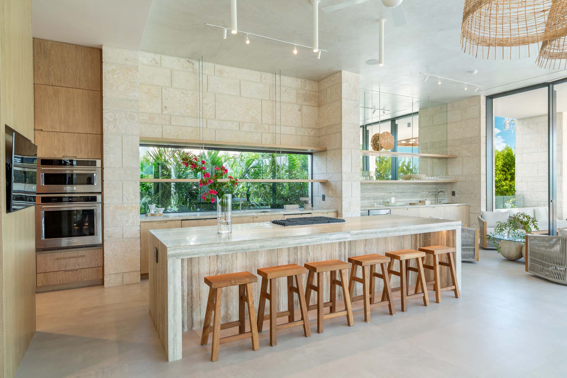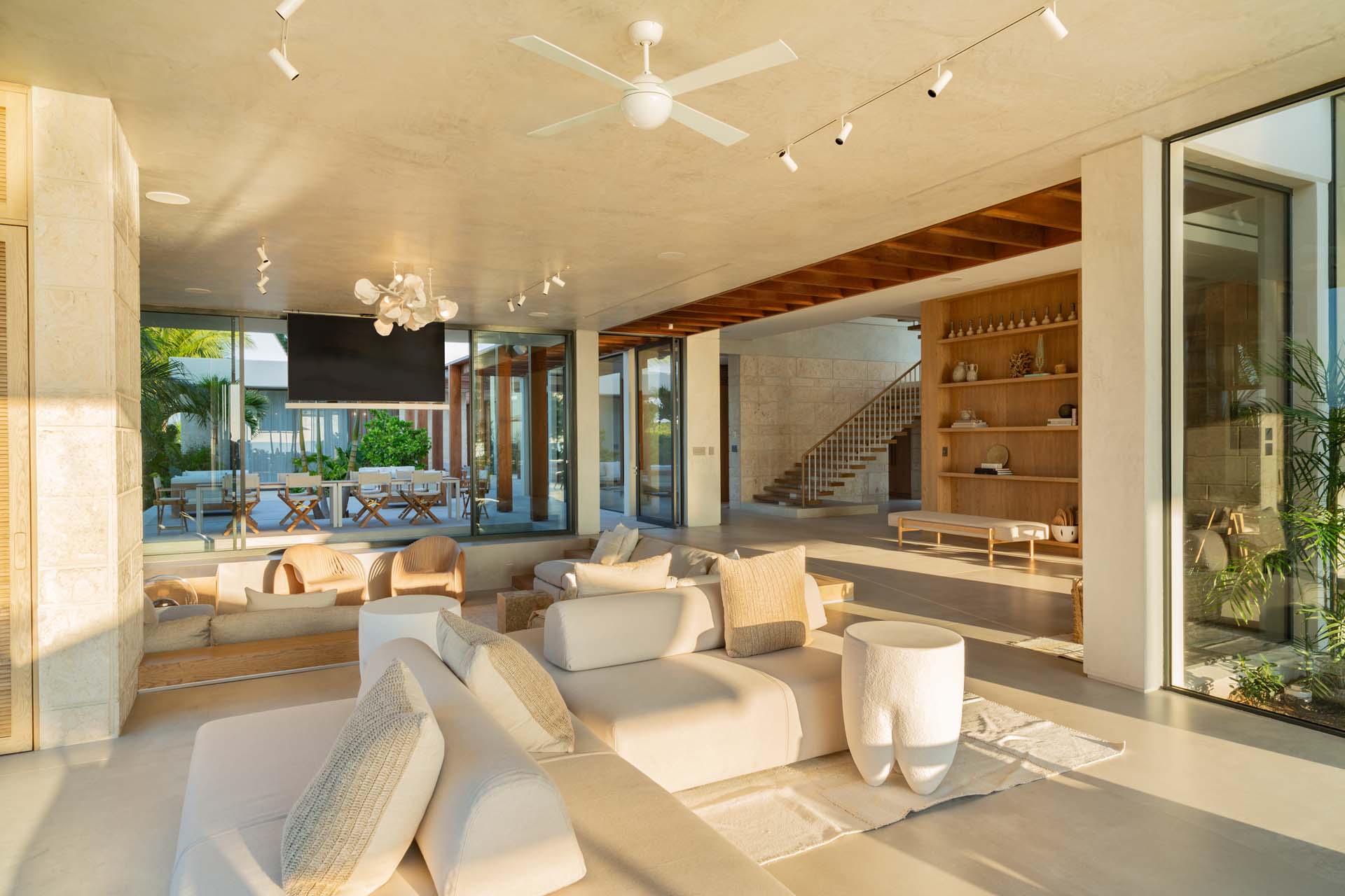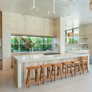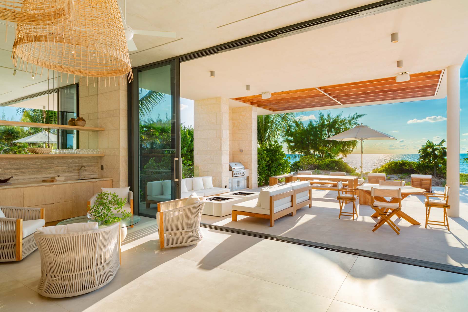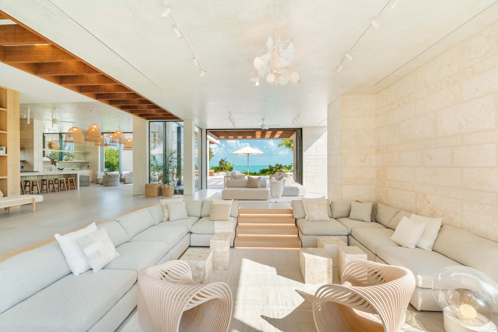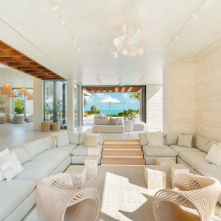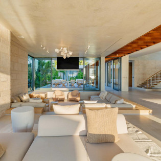 Inside, the home radiates coastal sophistication. With 6,000 square feet of thoughtfully designed interior space, it’s a spacious sanctuary for rest and play. Floor-to-ceiling sliding glass doors erase the boundaries between indoors and out, allowing the island breeze to sweep through the home and immerse you in nature.