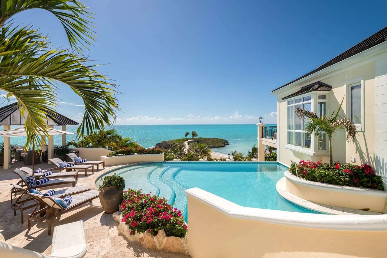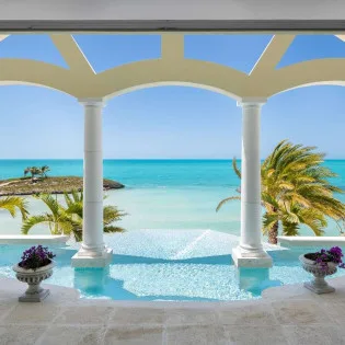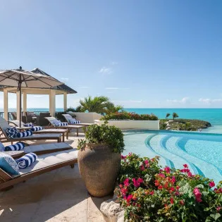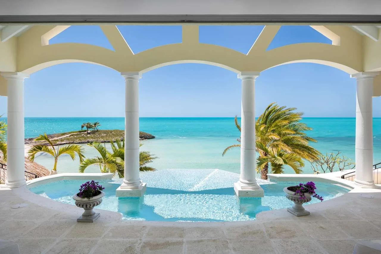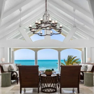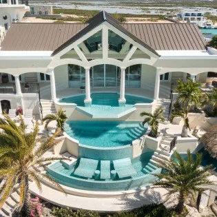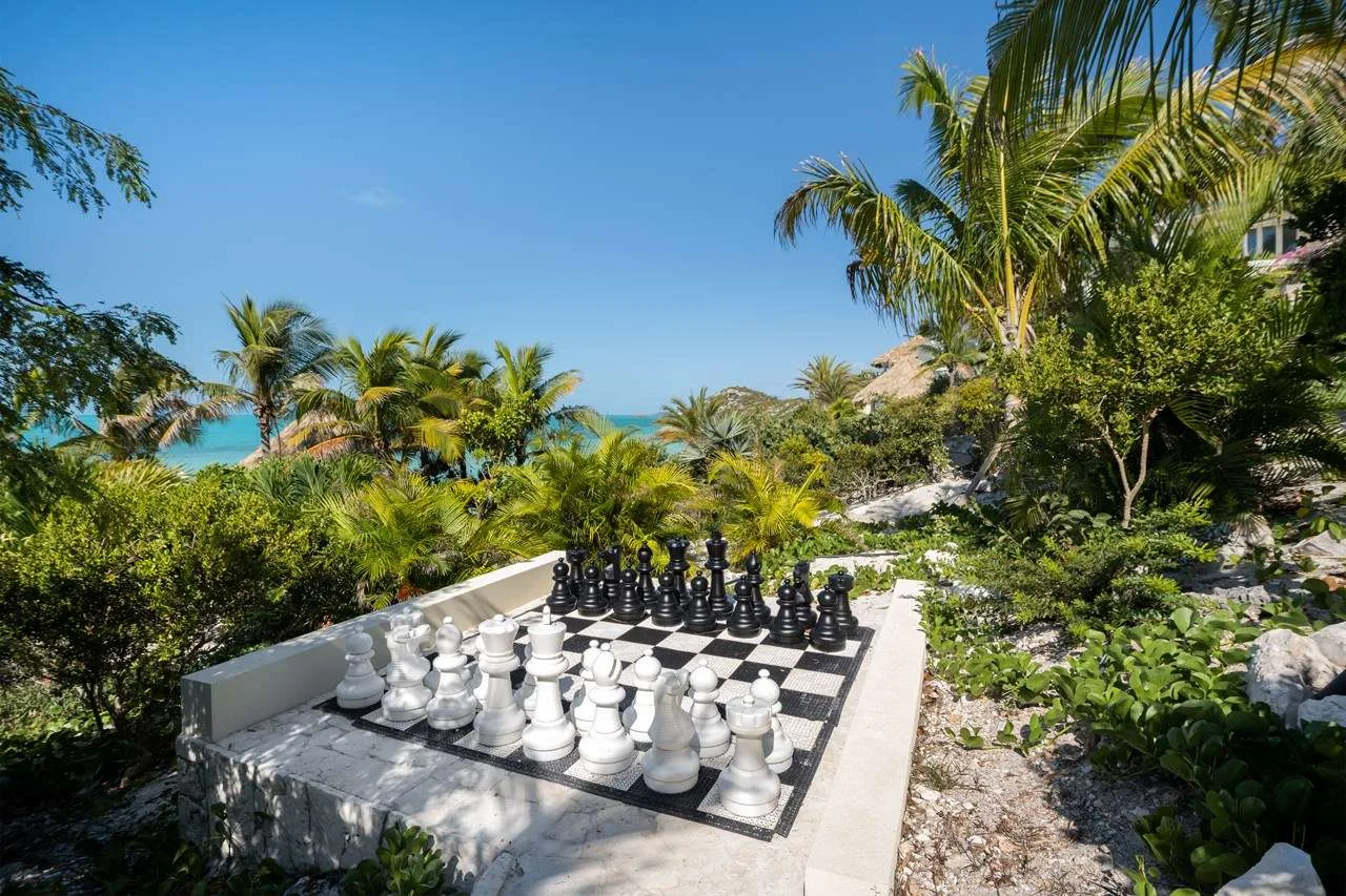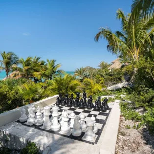 Emara Estate boasts a wealth of exceptional outdoor amenities and event spaces for large parties and celebrations. Enjoy a private white sand beach, two outdoor pools, including a three-tier infinity pool with a swim-up bar and built-in sun loungers overlooking the ocean. Engage in friendly competition on the full-size tennis court with a basketball net or challenge your wits on the life-size chess board.