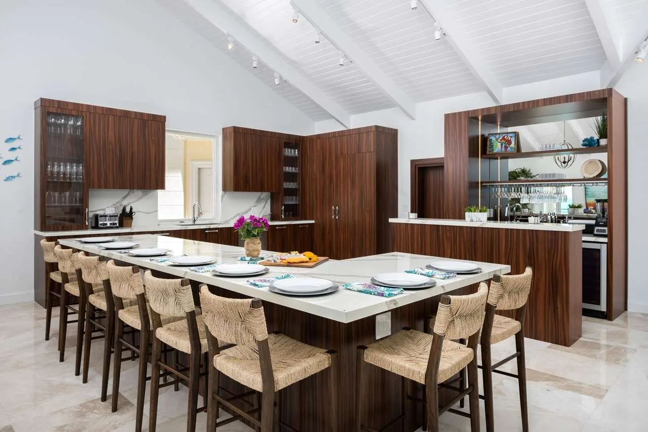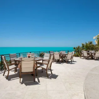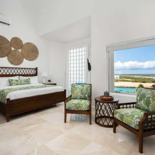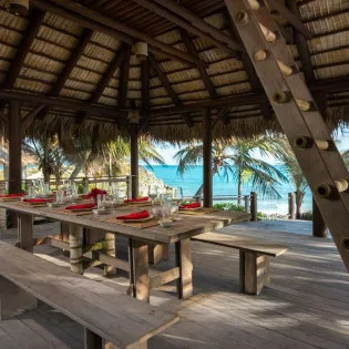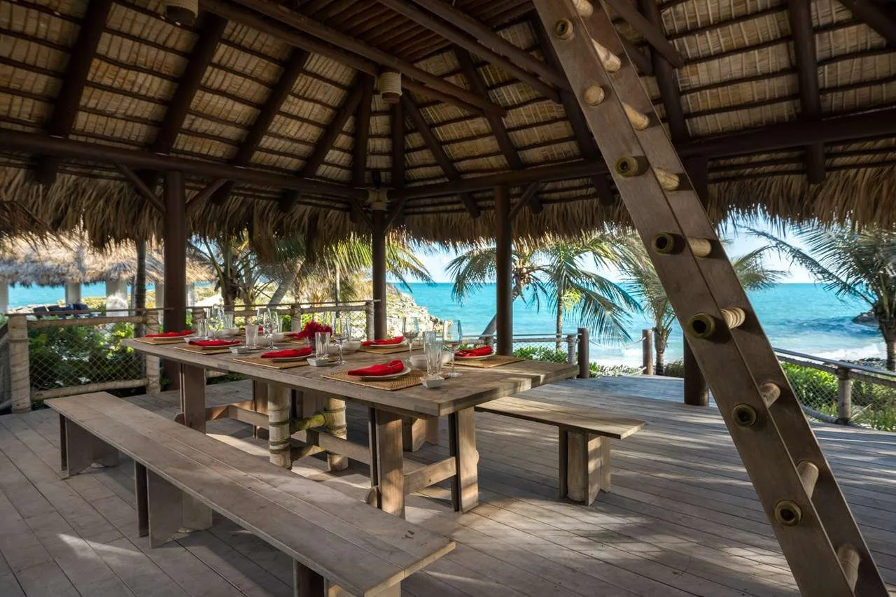 The beachside entertainment platform with a stand-up bar and lounge seating, foosball table, volleyball net, treehouse with bench-style seating, the palapa with an outdoor grill, and the oceanside lounge with a firepit provide ample opportunities for relaxation and socializing.