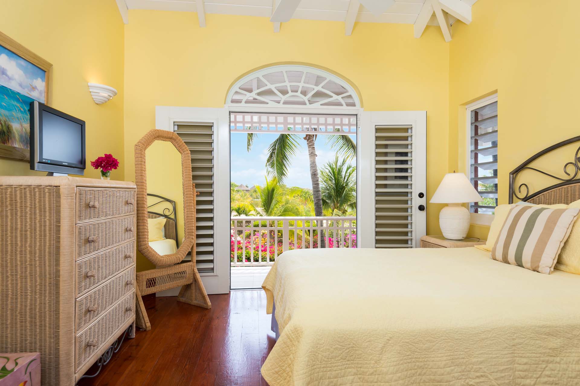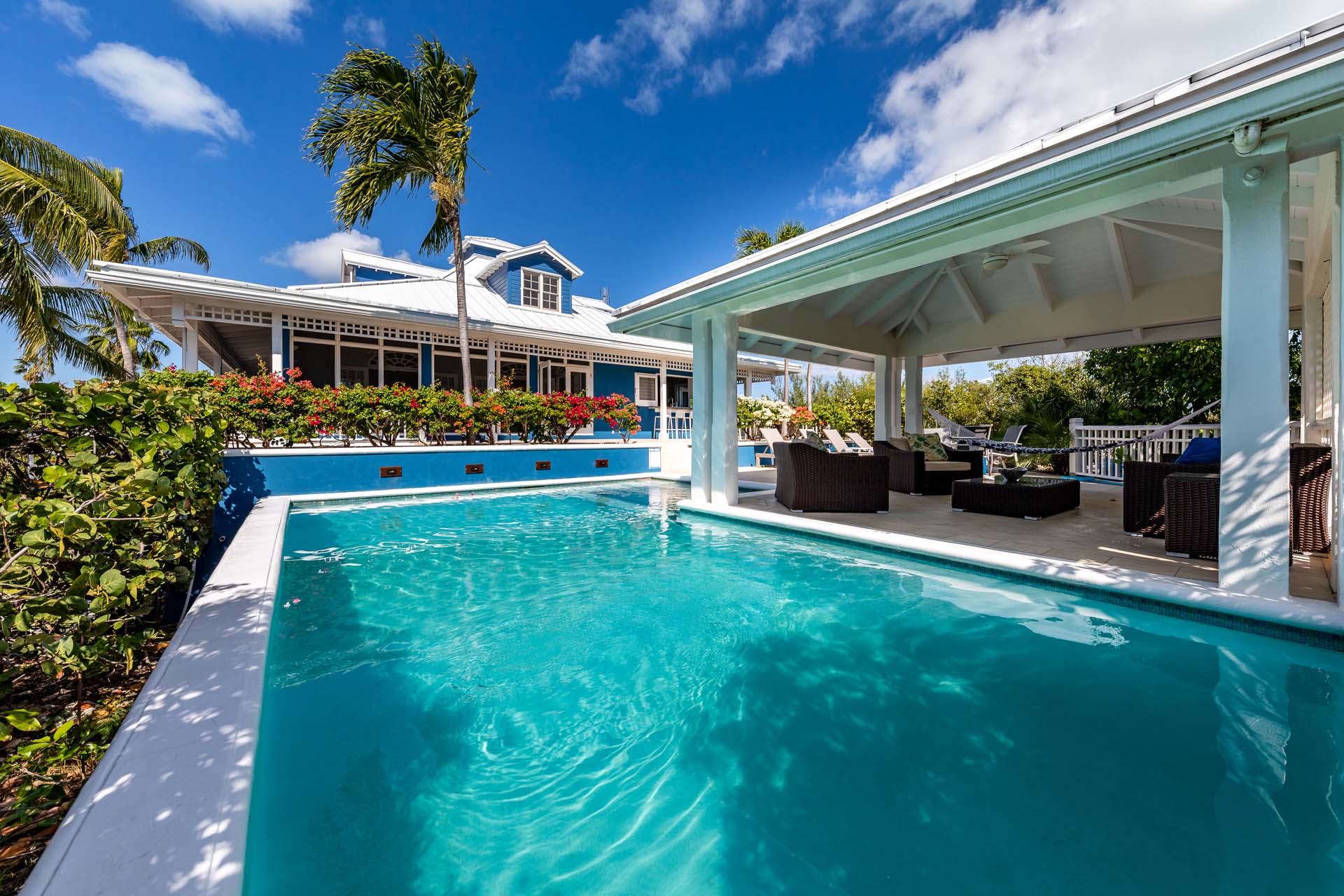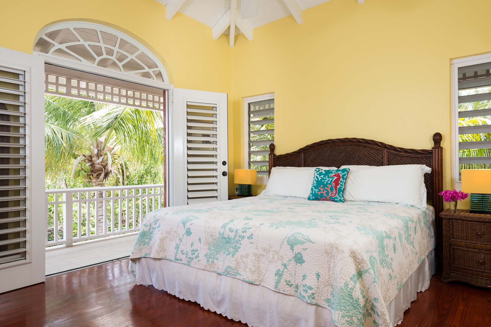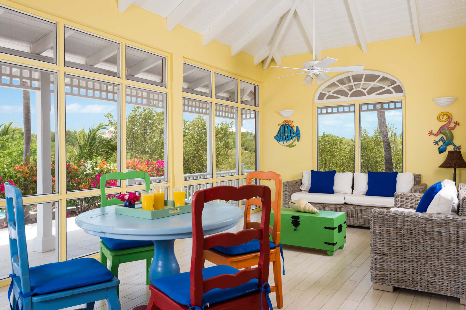 Welcome to Villa Etoile de Mer (villa code: IE ETO), a charming 4-bedroom beachfront villa in the Taylor Bay Beach area of Providenciales. Surrounded by lush palm trees and just a short walk from the beach, this villa is an ideal choice for a relaxing getaway in Turks and Caicos.   Relaxing is easy in the flowing, open-plan design of Villa Etoile de Mer. Designed to be open to make the most of the gentle island breeze, it’s overflowing with bright colors and Caribbean charms.