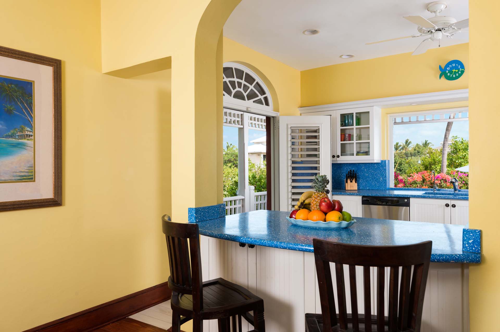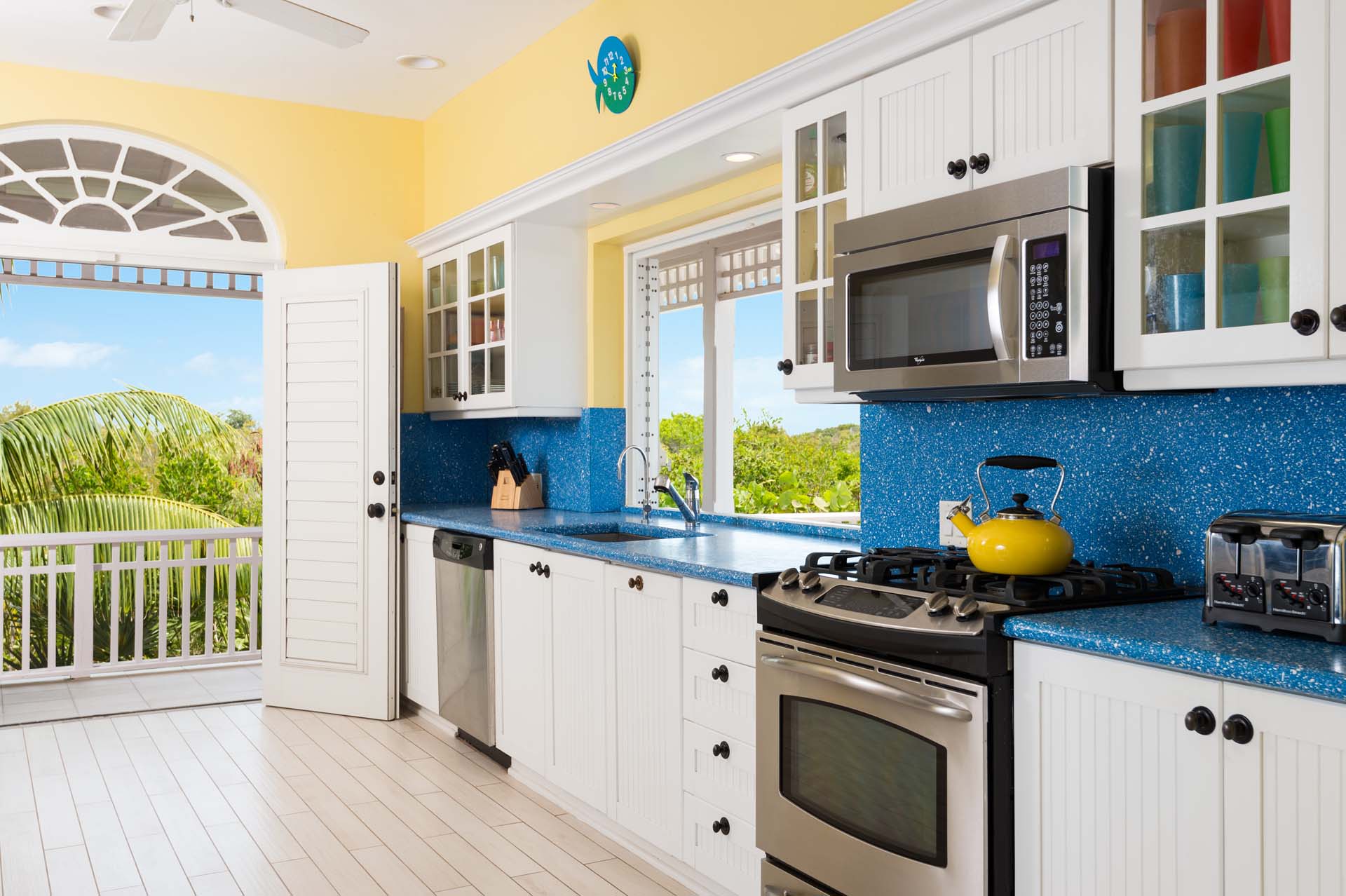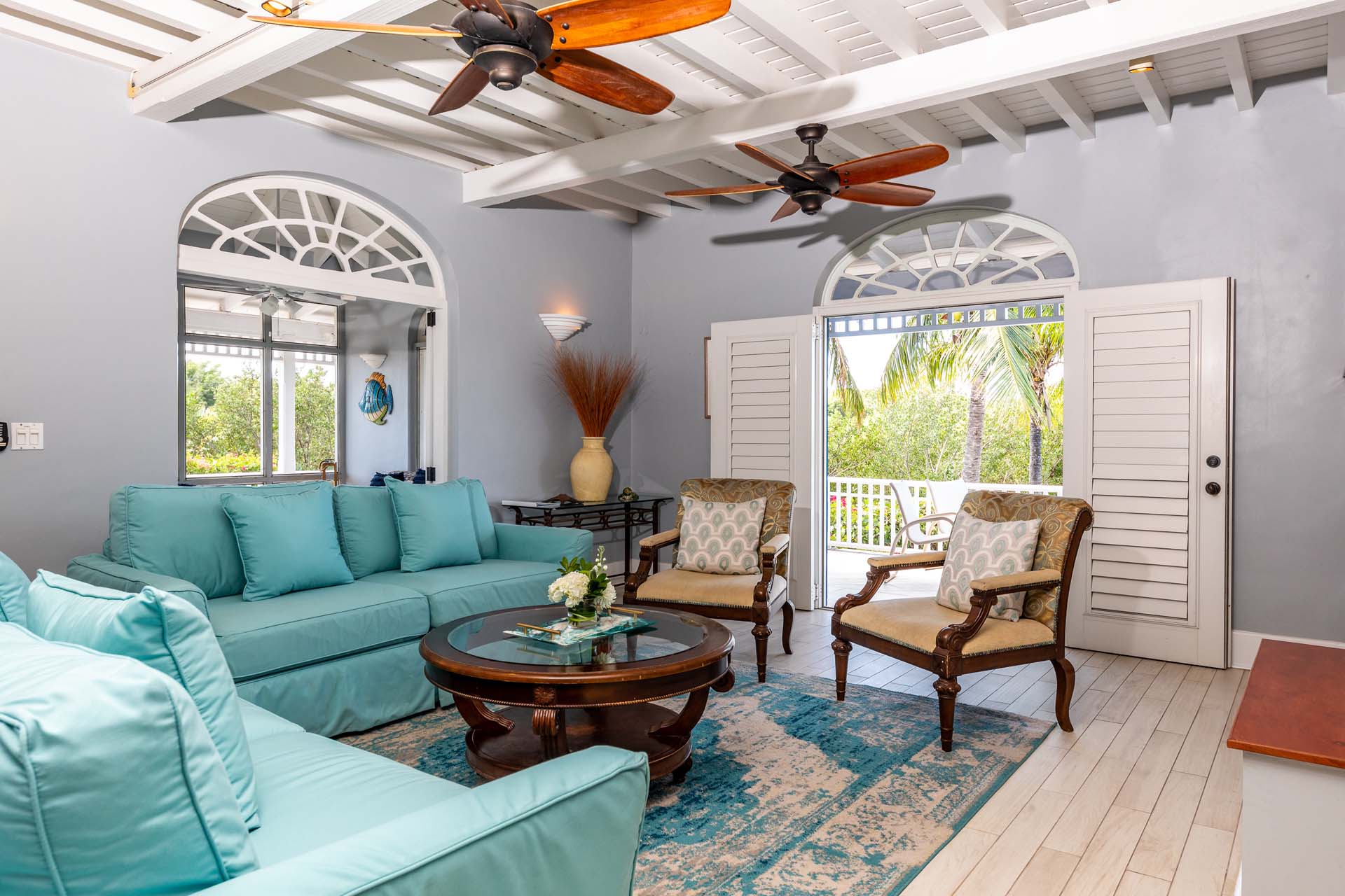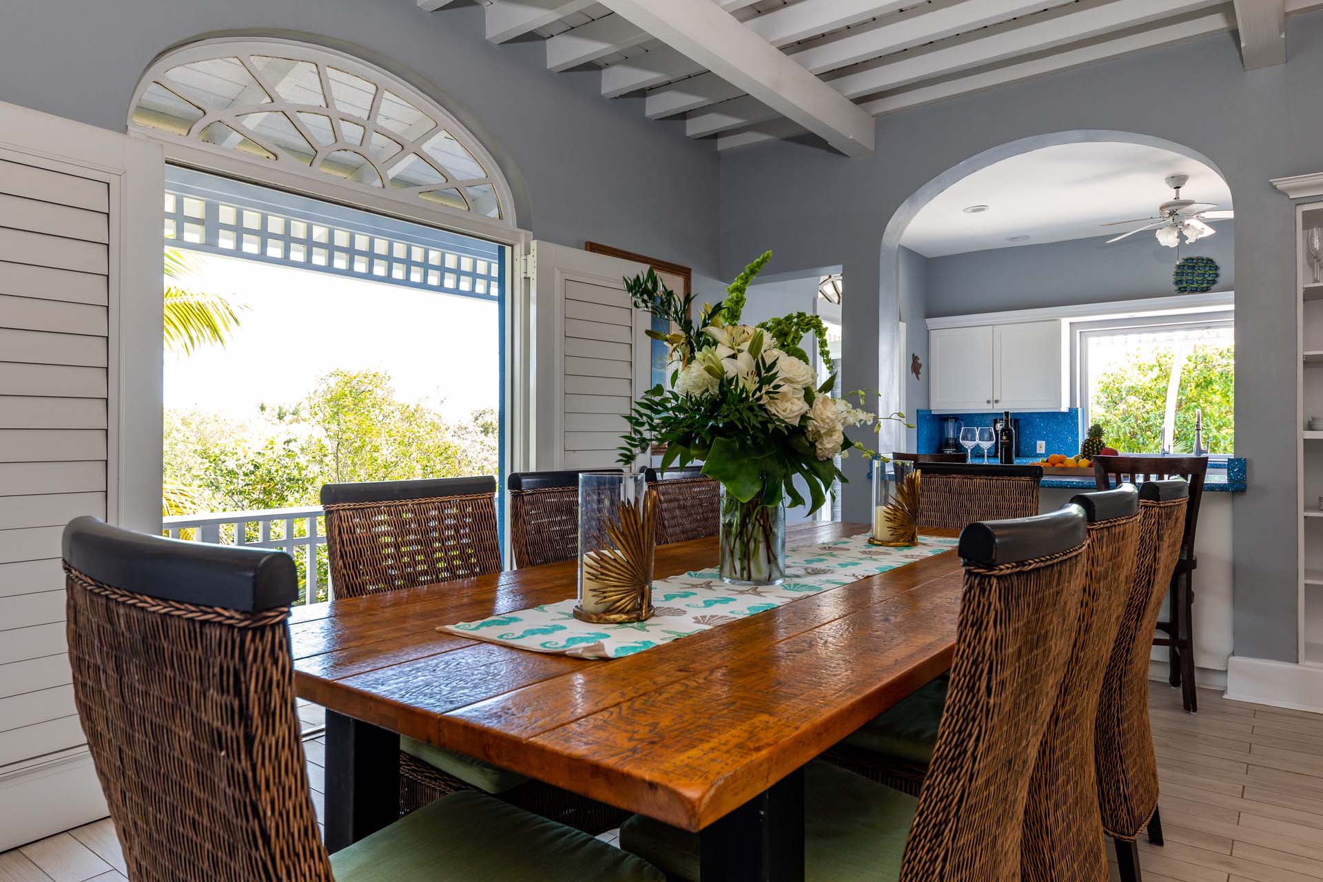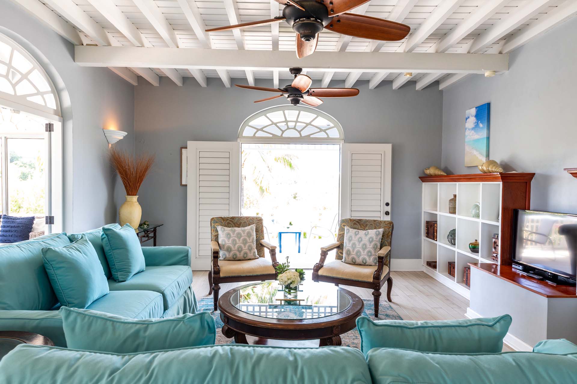 Welcome to Villa Etoile de Mer (villa code: IE ETO), a charming 4-bedroom beachfront villa in the Taylor Bay Beach area of Providenciales. Surrounded by lush palm trees and just a short walk from the beach, this villa is an ideal choice for a relaxing getaway in Turks and Caicos.   Relaxing is easy in the flowing, open-plan design of Villa Etoile de Mer. Designed to be open to make the most of the gentle island breeze, it’s overflowing with bright colors and Caribbean charms.