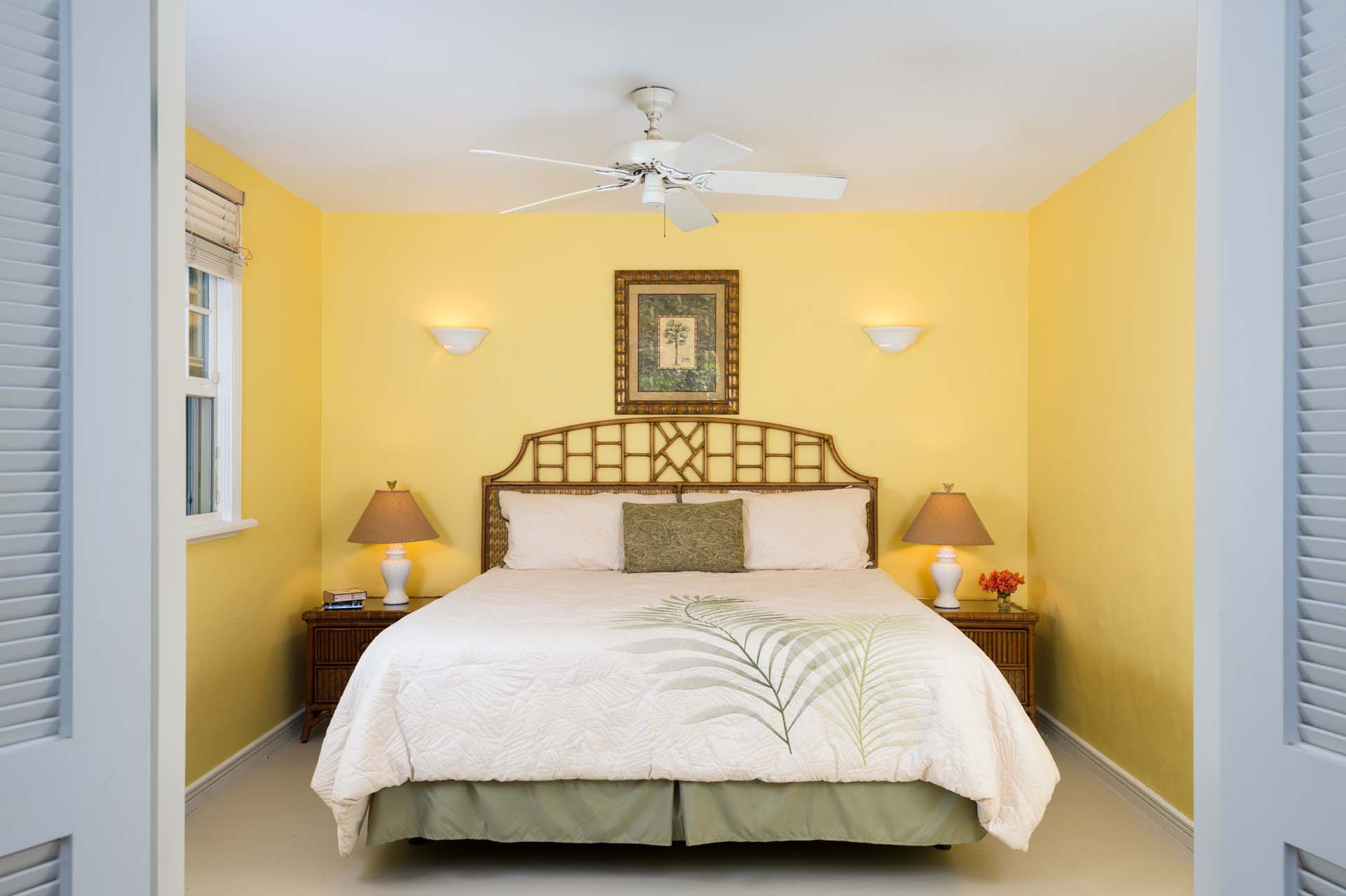 King Bed, A/C, Ceiling Fan, Ensuite bathroom, Garden View, Exterior Access, Located on the ground floor