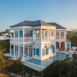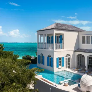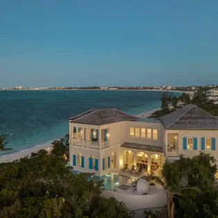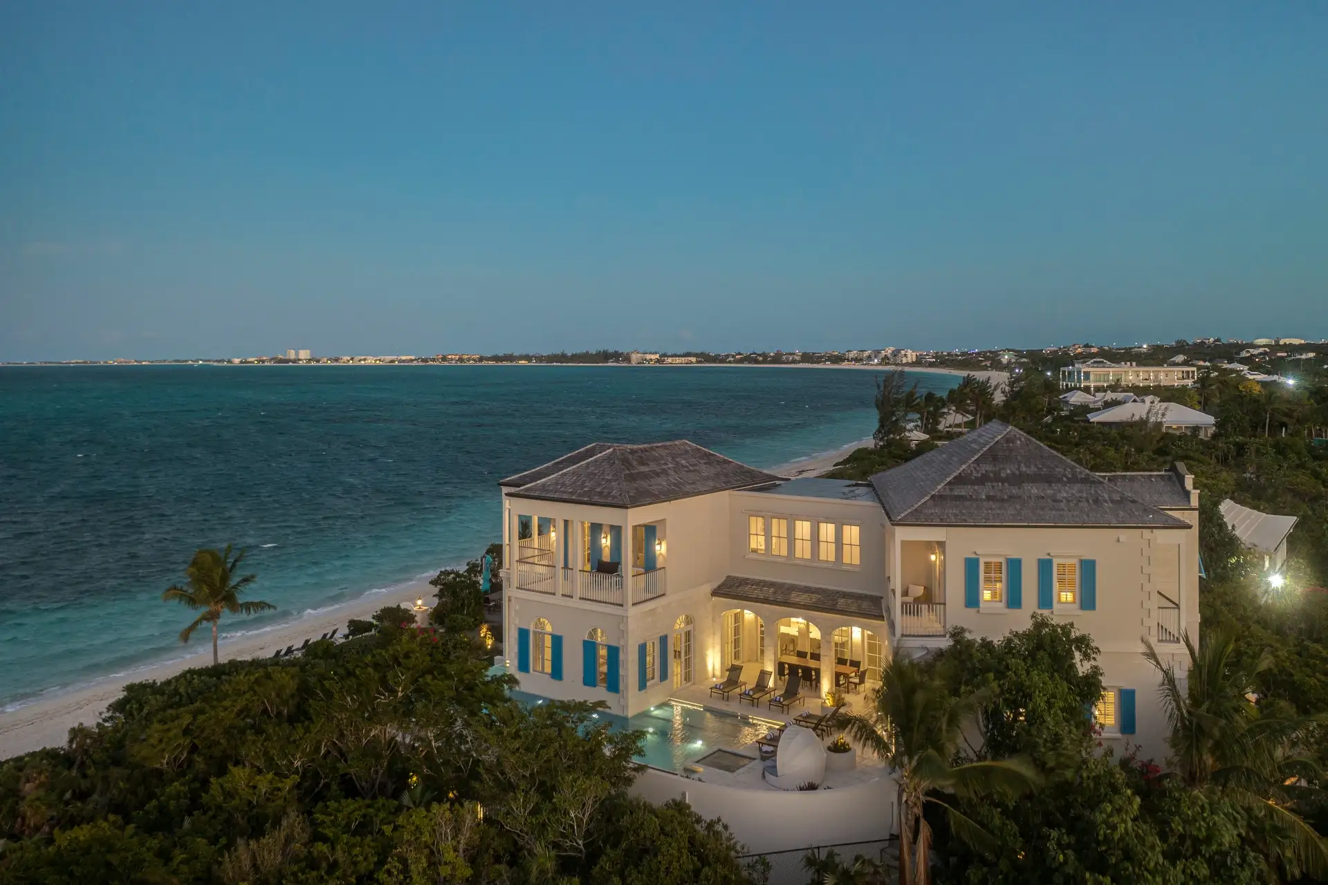 Newly-completed in 2019, this classical Caribbean villa is located in Grace Bay on the pristine and tranquil stretch of beach in the beautiful Turtle Cove neighborhood of Providenciales.
