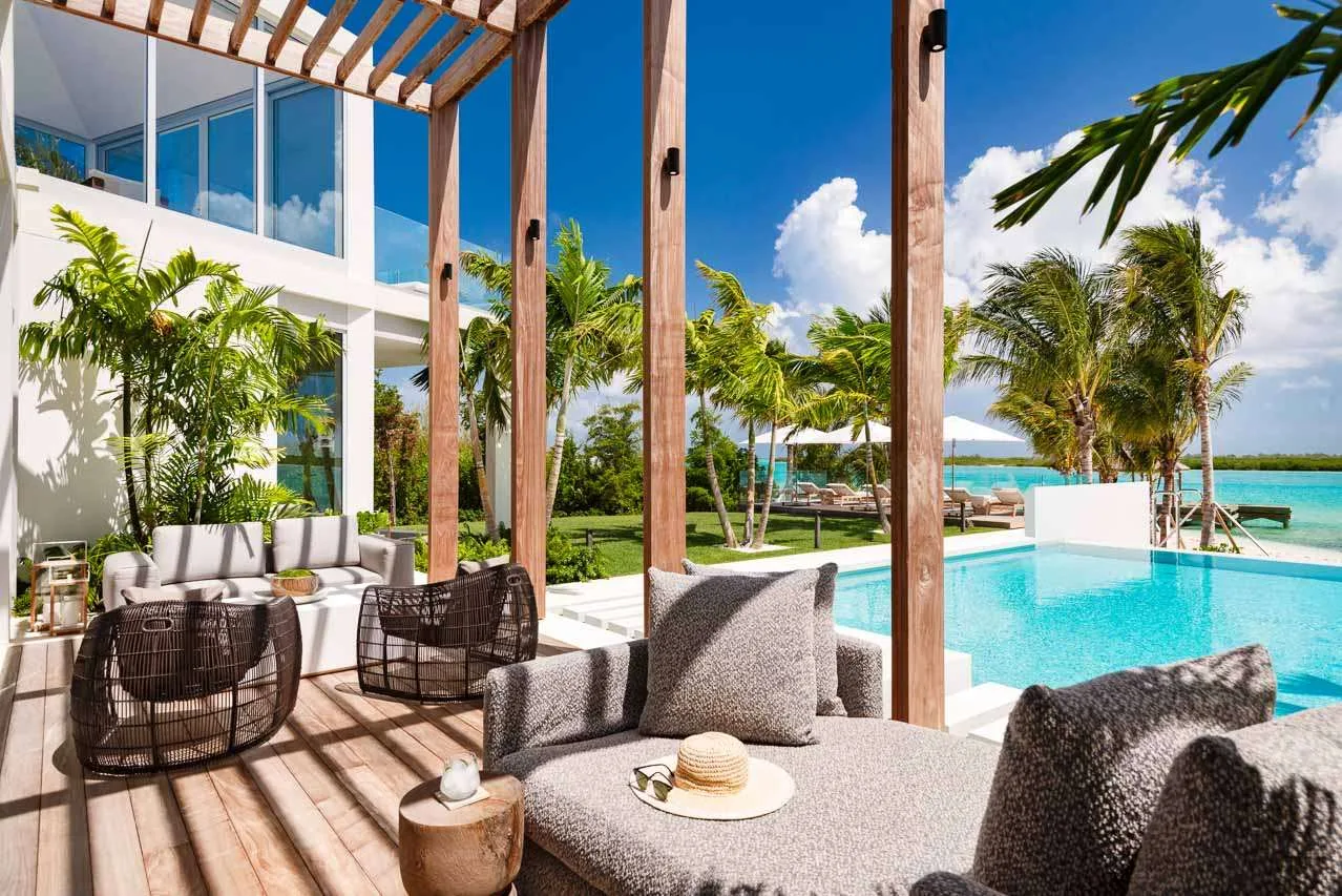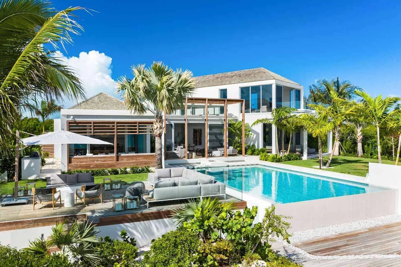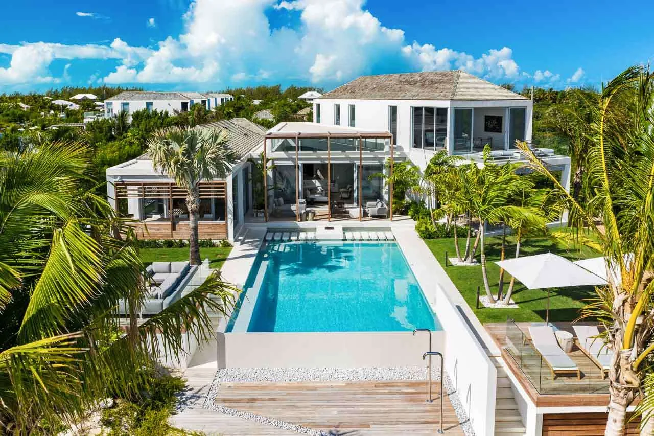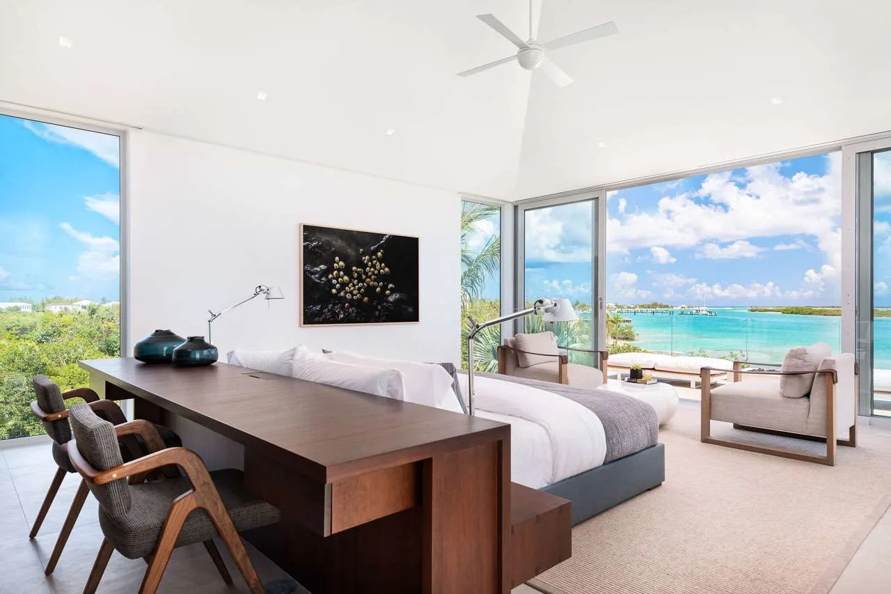 Villa Cabuya, (villa code: TC CAB) is a 6-bedroom with soaring ceilings, lending a sense of airy spaciousness, that greet you as you enter this luxurious villa nestled in one of the most exclusive gated communities in Providenciales. Floor to ceiling glass paneling draws the eye to expansive views of turquoise waters and a protected wildlife preserve that beckons beyond.