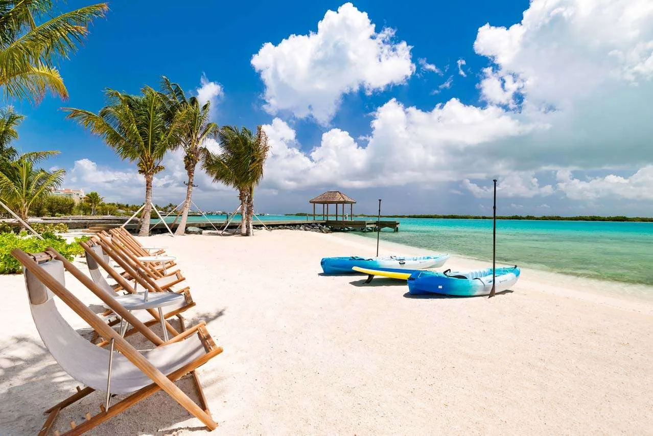 Outdoor enthusiasts can enjoy kayaking from the beach to the nearby mangroves, a sanctuary for birds and home to juvenile aquatic life. Or be picked up from the private dock to explore the vast stretches of white sand beaches on the neighboring uninhabited cays.