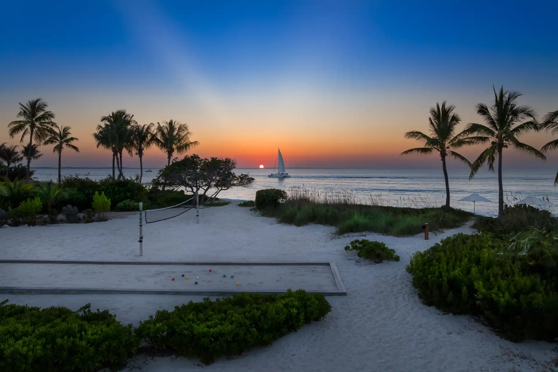 The fully-staffed luxury experience has been thoughtfully elevated with the addition of a Kosher-compliant kitchen, a new heated beach-entry pool, jacuzzi, and a state-of-the-art media room. Fitness enthusiasts will enjoy a top-tier gym outfitted with cardio equipment, a Pilates reformer, and a full free weight section. Outdoor sports lovers will find a floodlit tennis court, pickleball, professional bocce ball, and beach volleyball.