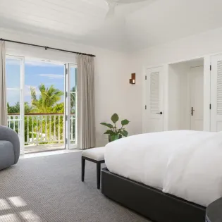 King Bed, A/C, Ceiling fan, Ensuite Bathroom, TV, Safe, Walk-in Closet, Balcony, Located on the 2nd floor in the main house, Ocean view