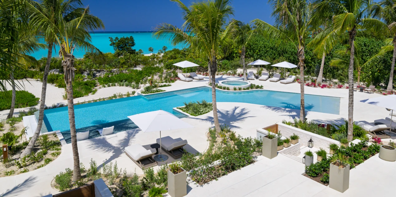 Welcome to Villa Sea Breeze Estate (villa code: TC AMG), an elegant 8-bedroom villa formerly known as Amazing Grace, is undergoing a remarkable transformation into an elegant retreat, soon to be completed. This exciting evolution preserves the estate’s original timeless charm while enhancing its grandeur across an expansive 7.5-acre property.