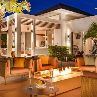 As night falls, enjoy the starlight glinting off the water from the comfort of the hot tub or a comfortable lounge surrounding a fire pit is a perfect spot for late-night island soirees.
