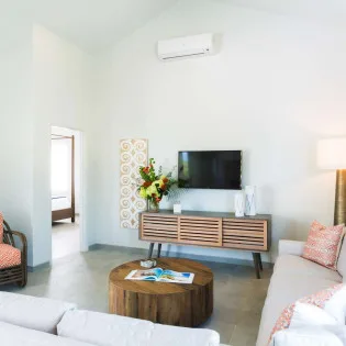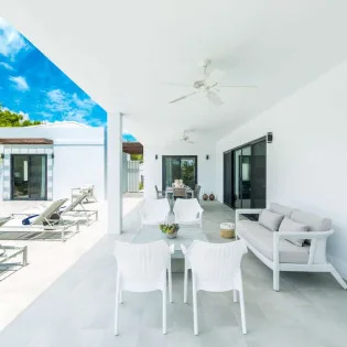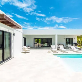 Villa Tradewinds, (villa code: TC TRA) is a tranquil 3-bedroom, pod styled villa. Newly-built and designed to seamlessly blends indoor/outdoor living with privacy and comfort.