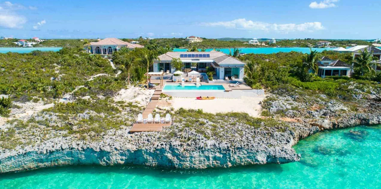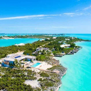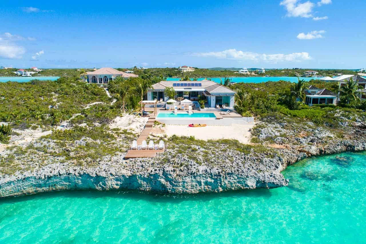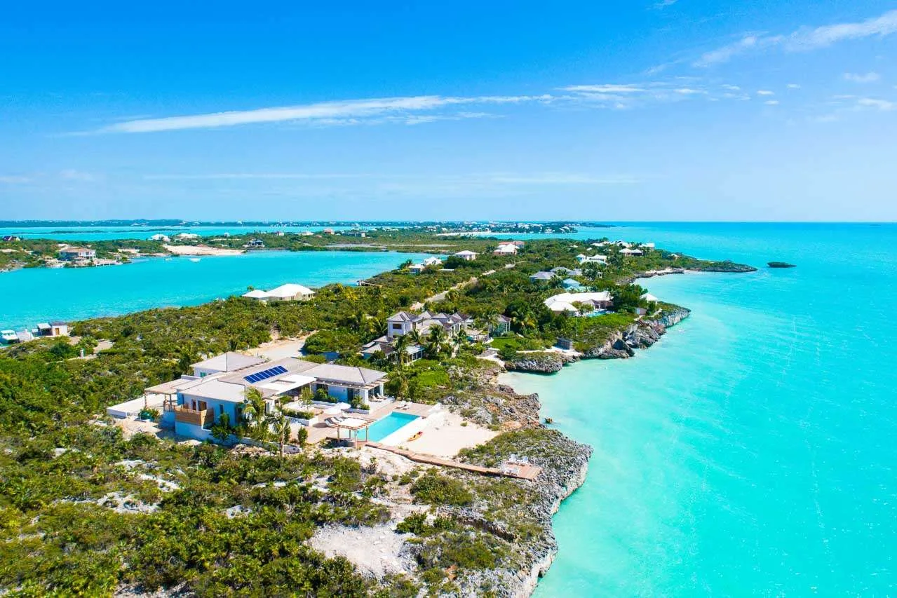 Located on the sunny southwestern shore of Provo in exclusive Silly Creek Estates, the villa is situated in a private gated community on the edge of Chalk Sound National Park, where it faces sweeping Caribbean views across the Caicos Bank to West Harbour Point and the unspoiled shoreline of Frenchman’s Creek Nature Preserve.