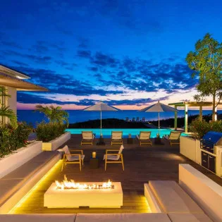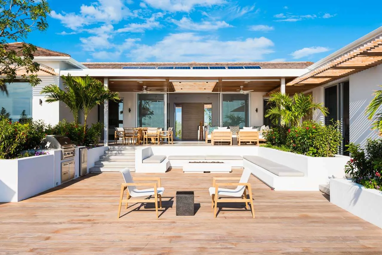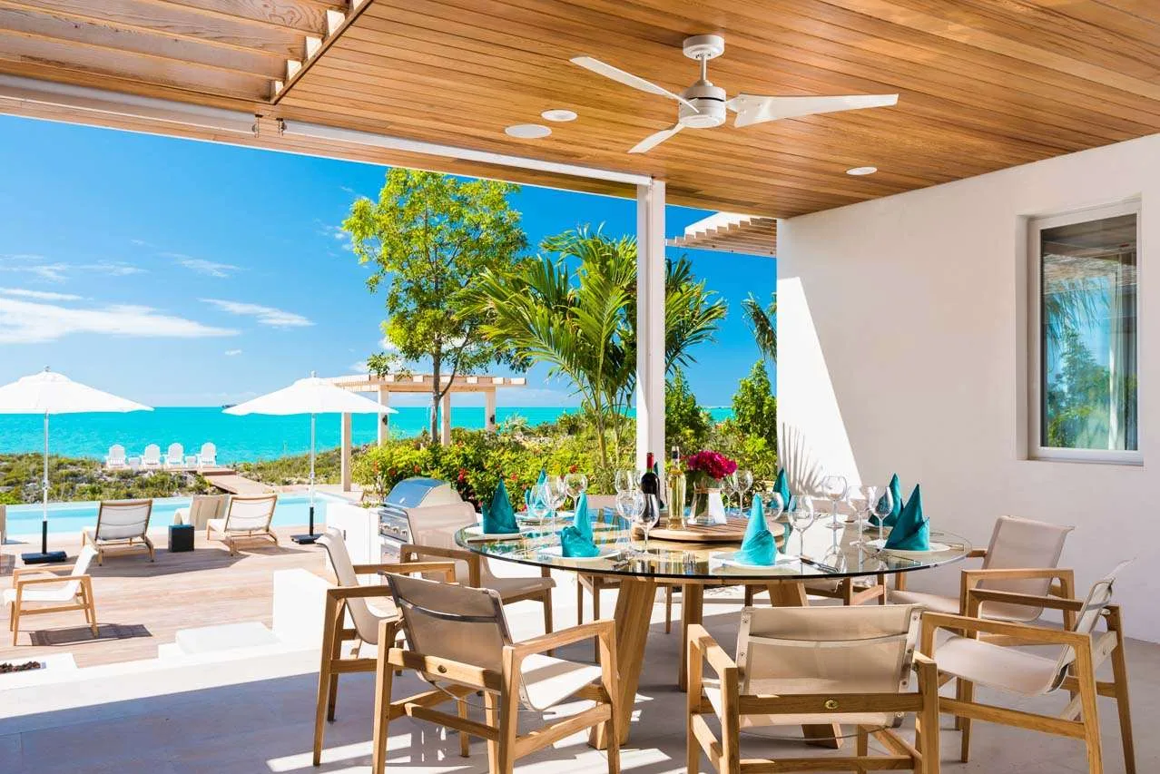 Villa Hesperides House offers everything for a perfect and indulgent getaway: swim in the infinity-edged pool while gazing across the mesmerizing cobalt of the Caicos Bank, relax in the waterfront gazebo caressed by the ocean breezes, or cozy up around the sunken fire pit to enjoy the perfectly framed sunset before dining alfresco on the outdoor terrace.