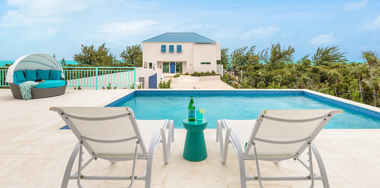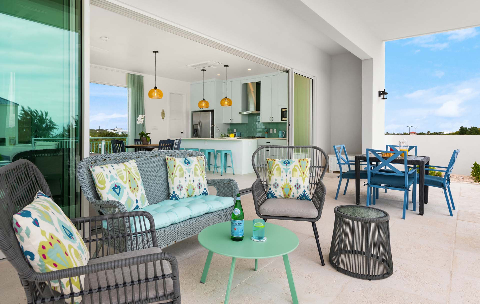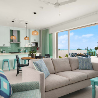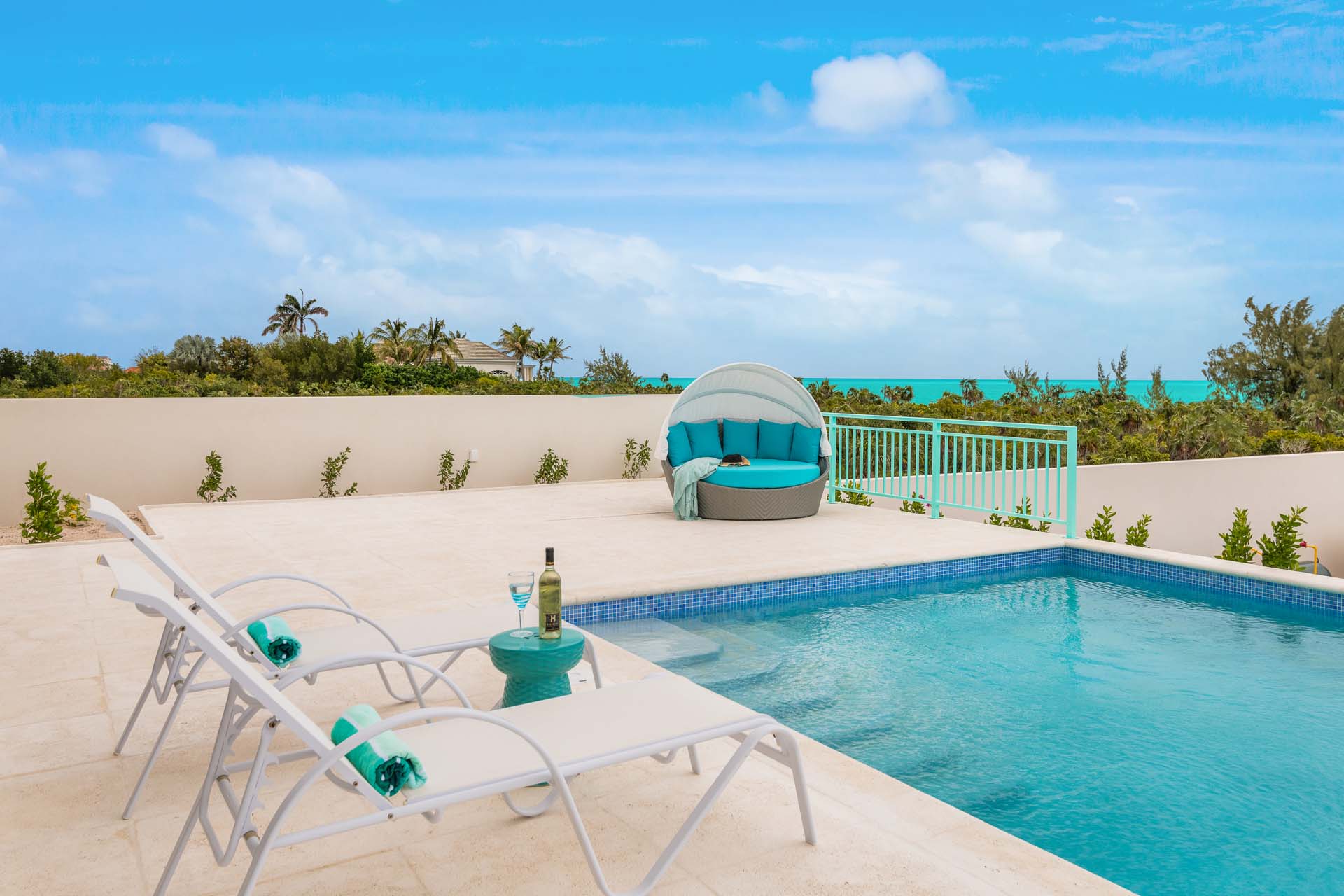 Located on the same attractive stretch of beach, this Long Bay villa offers a cheerful and open-concept living space with direct access to its private pool and a spacious patio and dining area.