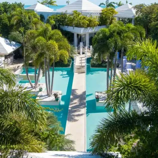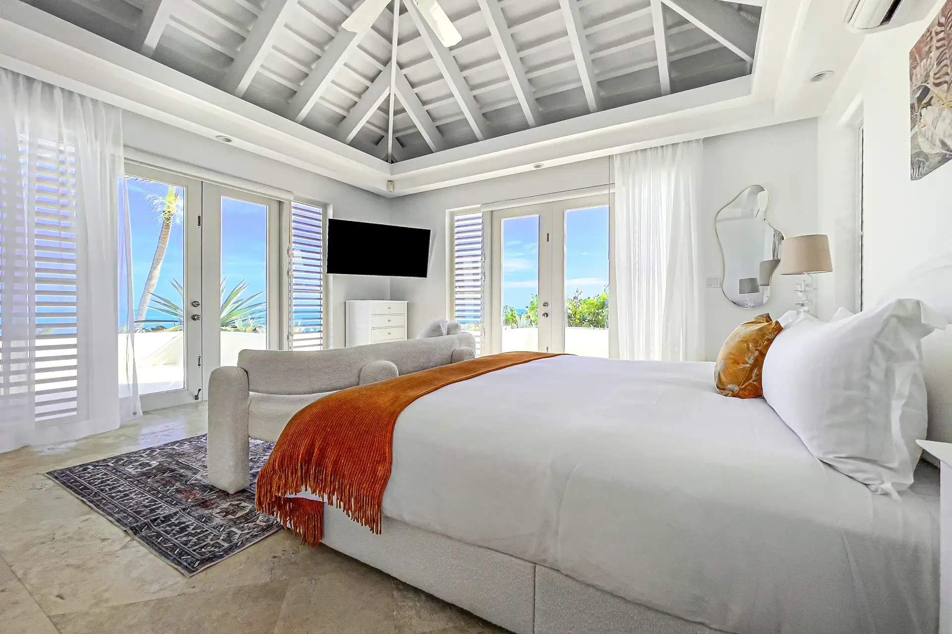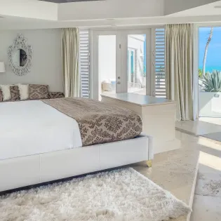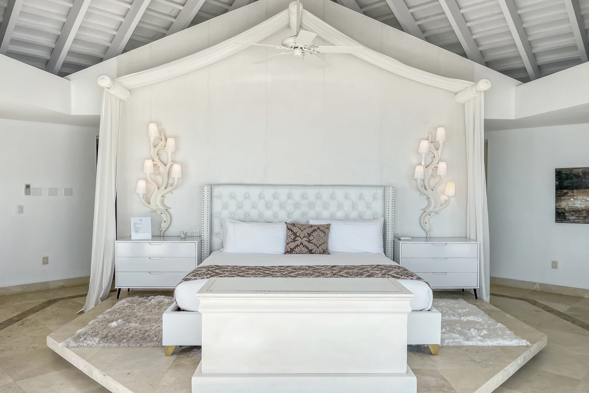 Villa Lidija’s House blends Caribbean charm with modern design across 12,000 square feet of elegant indoor-outdoor living space. With seven individually designed bedrooms, an alfresco kitchen and bar, two submerged pool bars, expansive lounging areas, and the island’s largest private pool, the villa is both spacious and sophisticated. Soaring ceilings and overhead fans create a breezy, open ambiance, while lush landscaping, wooden decks, and tranquil lagoons enhance the serene setting.