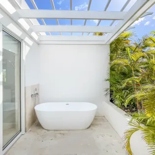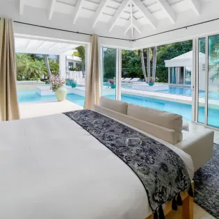 Guests can choose to spend their days relaxing in one of the villa’s pools while sipping a signature cocktail, letting go of every worry. For meals, the private chef and butler are on hand to prepare and serve personalized dishes and drinks—whether you'd prefer a relaxed poolside snack, a BBQ on the beach, a meal in the air-conditioned comfort of the villa, or dinner beneath the stars in the outdoor dining area.